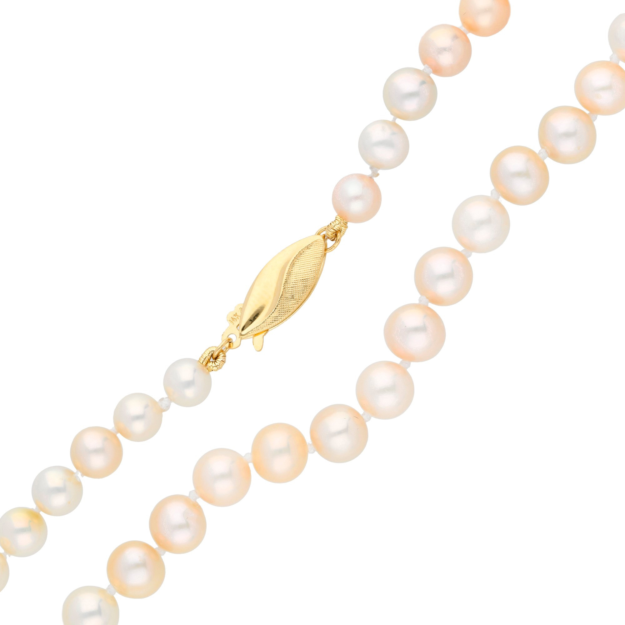 Experience timeless elegance with our 14ct Gold Pearl Necklace, a classic addition to any jewellery collection. This exquisite necklace features cream freshwater pearls, each carefully selected for their lustrous finish and uniform size. The pearls are beautifully complemented by a yellow gold clasp, intricately designed in the shape of a leaf, adding a touch of nature inspired sophistication. Perfect for special occasions or as a luxurious everyday accessory, this pearl necklace exudes grace and class. The unique clasp ensures it is secure while adding an elegant detail that sets this piece apart from traditional pearl necklaces. Whether gifted to a loved one or as a treat to yourself, this necklace is a cherished item that enhances any ensemble.