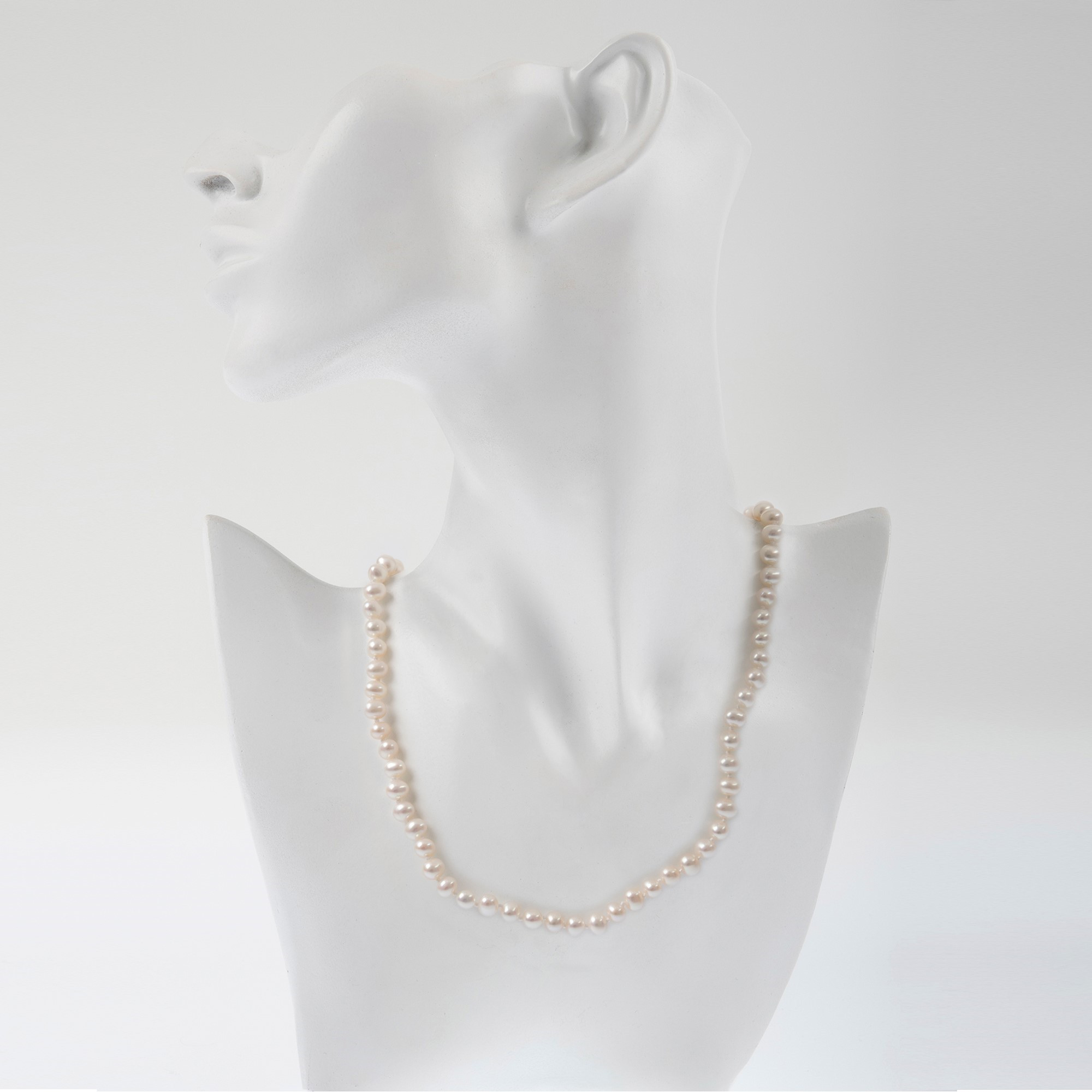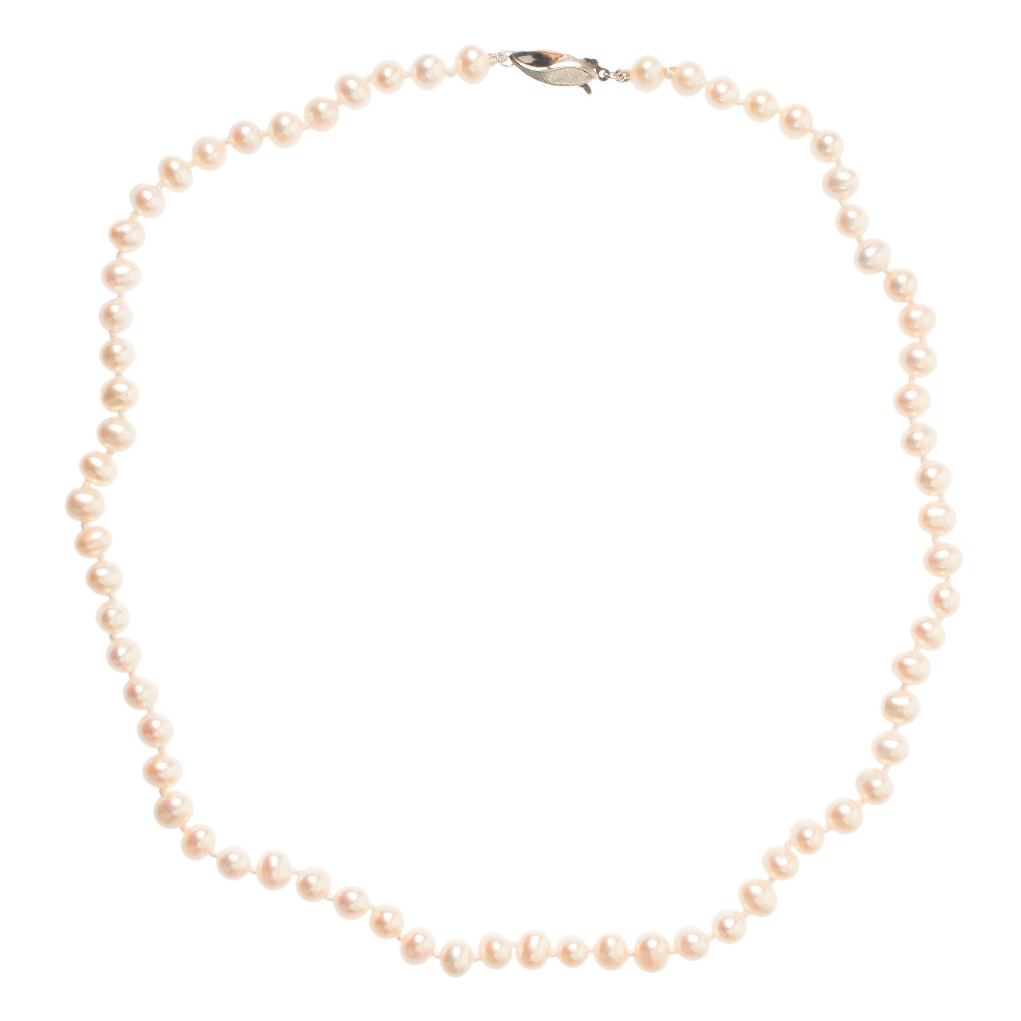 Discover the timeless elegance of our 14ct White Gold Freshwater Pearl Necklace, a piece that epitomises classic style with a modern twist. This exquisite necklace features a string of carefully selected freshwater pearls, known for their luminous sheen and smooth texture. The pearls are complemented by a unique 14ct white gold clasp, delicately crafted into the shape of a leaf, adding a touch of nature inspired beauty. This necklace is perfect for those seeking a sophisticated accessory that combines traditional glamour with contemporary design elements. Whether it's for a wedding, a special occasion, or everyday elegance, this pearl necklace is a luxurious addition to any jewellery collection.