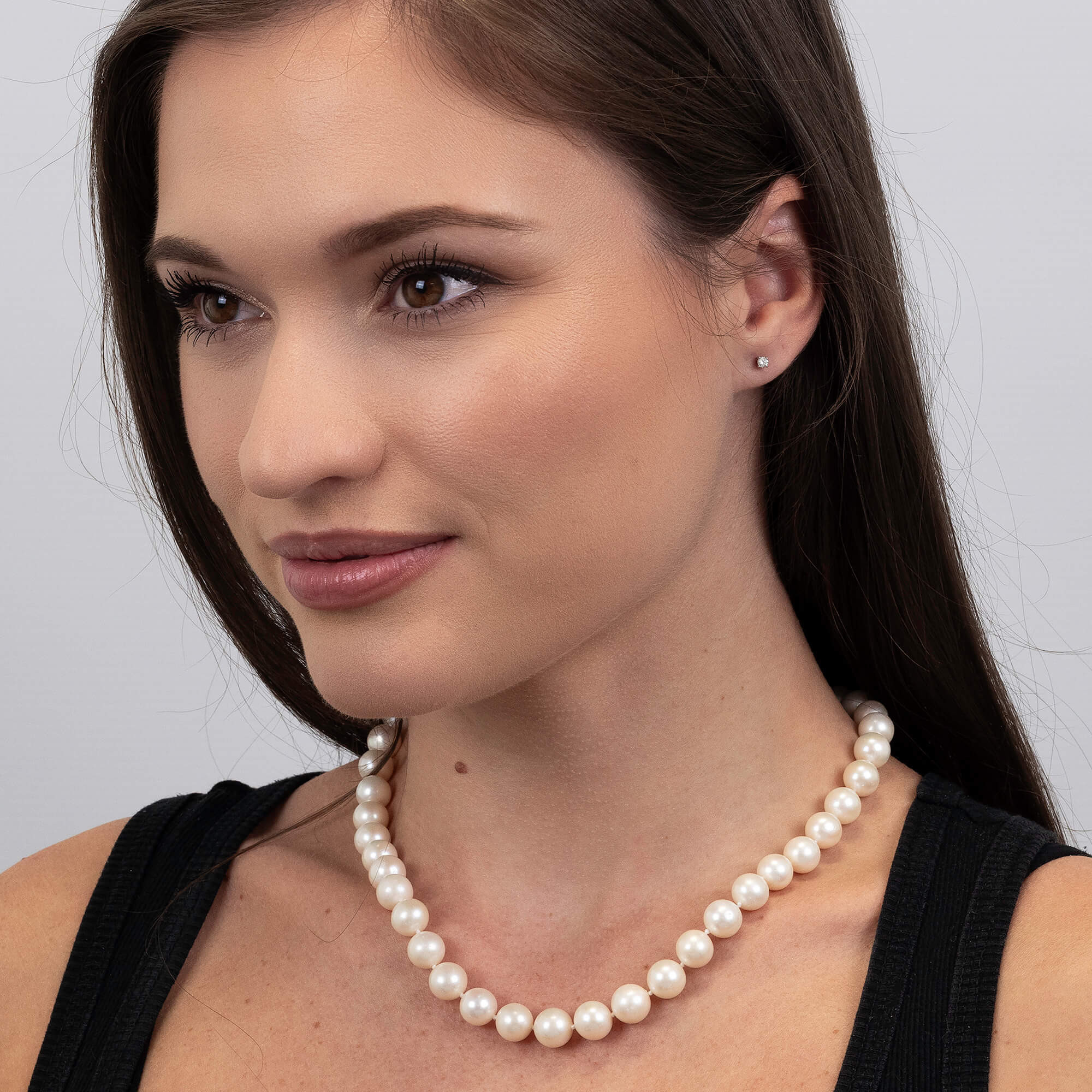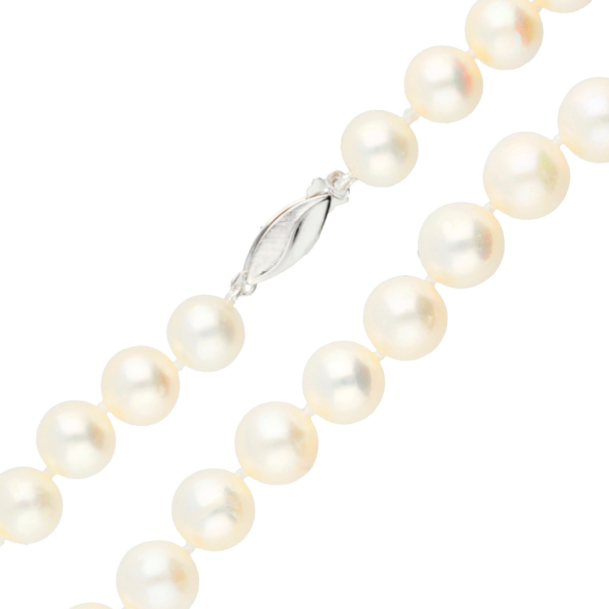 Elevate your elegance with our 14ct White Gold Pearl Necklace, a classic addition to any jewellery collection. This necklace features a beautiful string of lustrous freshwater cultured pearls, each one carefully selected for its smooth surface and radiant sheen. The pearls are seamlessly held together by a sleek 14ct white gold clasp, adding a touch of modern sophistication to the timeless allure of pearls. Perfect for both formal occasions and everyday refinement, this necklace is designed to sit gracefully along the neckline, bringing effortless beauty to any outfit. A timeless piece that embodies elegance, this pearl necklace makes a wonderful gift or a special treat for yourself, promising a lifetime of style and grace.