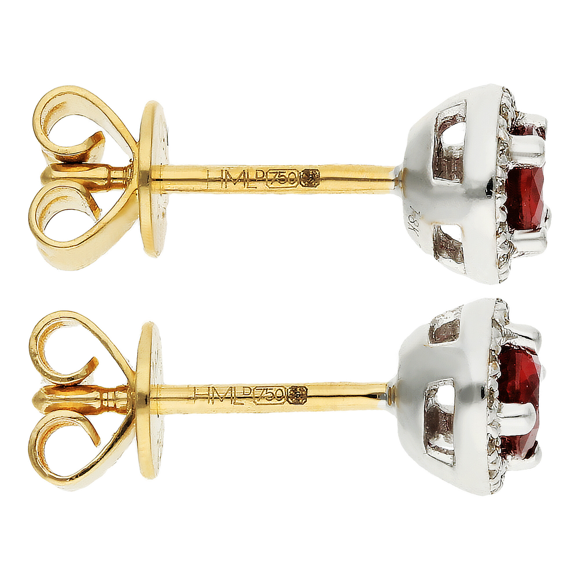 Add a touch of refined luxury to your collection with these elegant 18ct gold ruby halo stud earrings. At the centre of each earring sits a vibrant round ruby, rich in colour and beautifully faceted to catch the light. Surrounding each ruby is a delicate halo of tiny diamonds, offering a subtle yet sparkling contrast that enhances the deep red of the central stone. The gallery and mount are crafted in sleek white gold, providing a clean and contemporary backdrop, while the post and scroll back are finished in classic yellow gold for added warmth and comfort. This thoughtful blend of precious metals and gemstones creates a timeless design suitable for any occasion. Whether chosen as a romantic gift or a personal treasure, these earrings bring elegance and charm to both daywear and evening looks. A versatile and stylish addition to any fine jewellery collection.