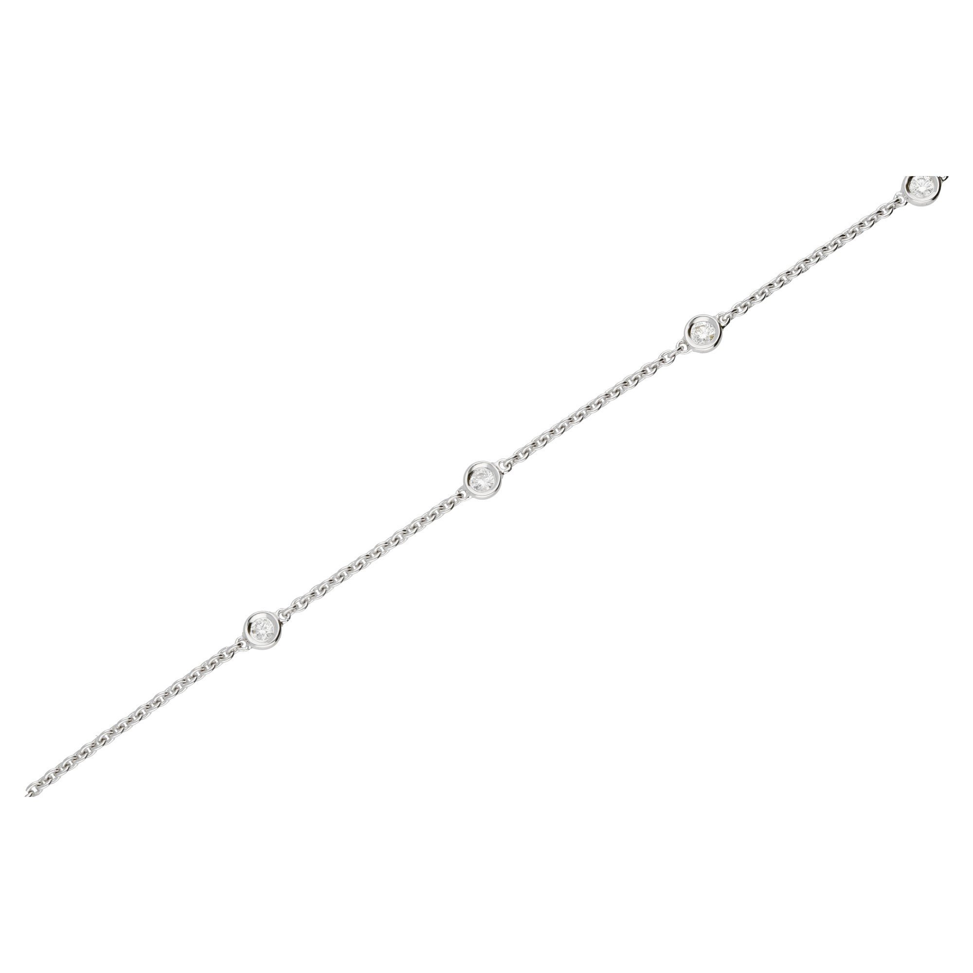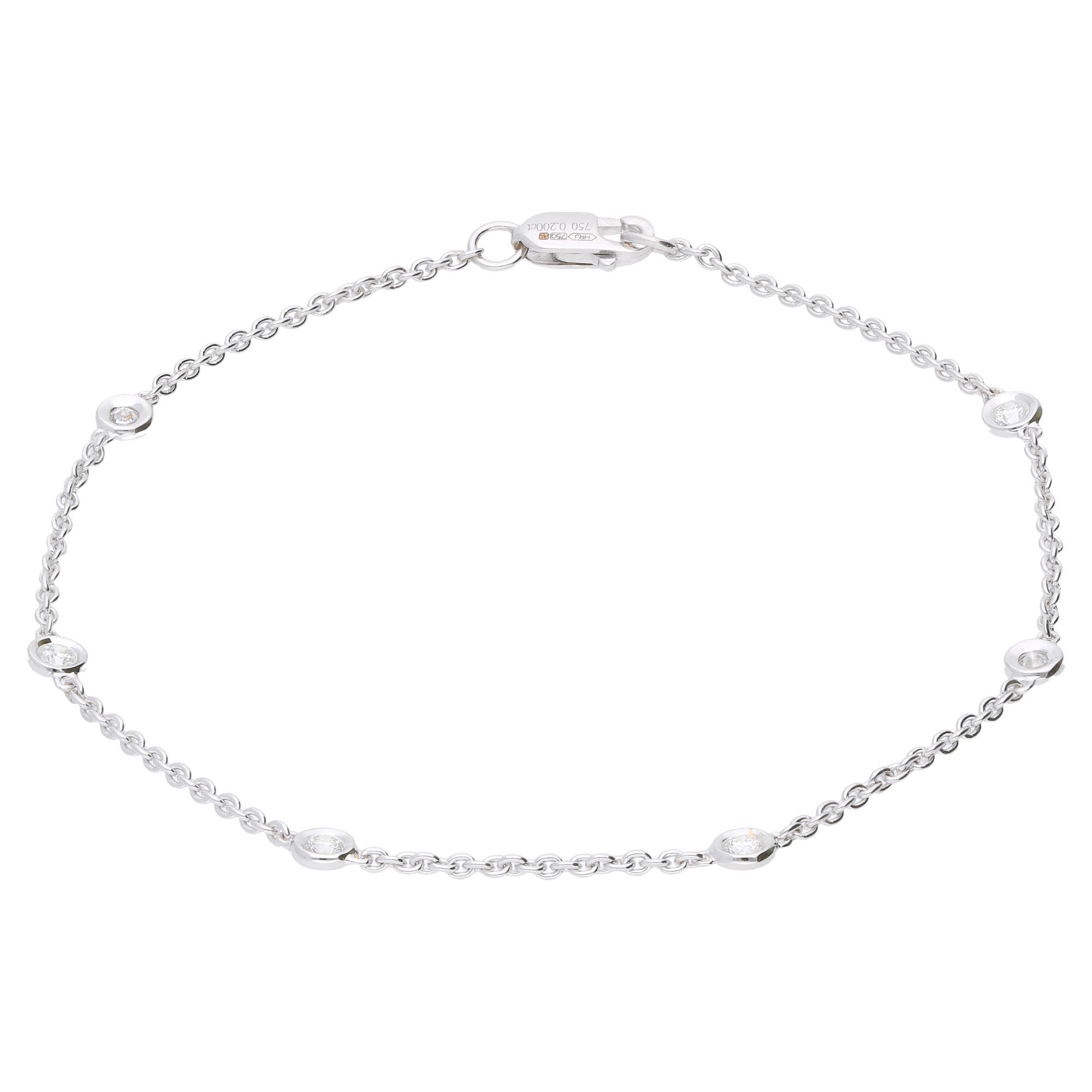 Experience the allure of sophistication with this 18ct White Gold Diamond Bracelet, a timeless addition to any luxury jewellery collection. Featuring a sleek trace chain, this bracelet is adorned with six bezel set round brilliant cut diamonds, spaced equally to provide a harmonious sparkle around the wrist. Each diamond has been meticulously selected for its brilliance and clarity, set against the lustrous white gold to enhance its radiant glow. This bracelet is perfect for elegant evenings or as a standout accessory for everyday wear. Treat yourself or someone special to this exquisite piece that epitomises grace and elegance.