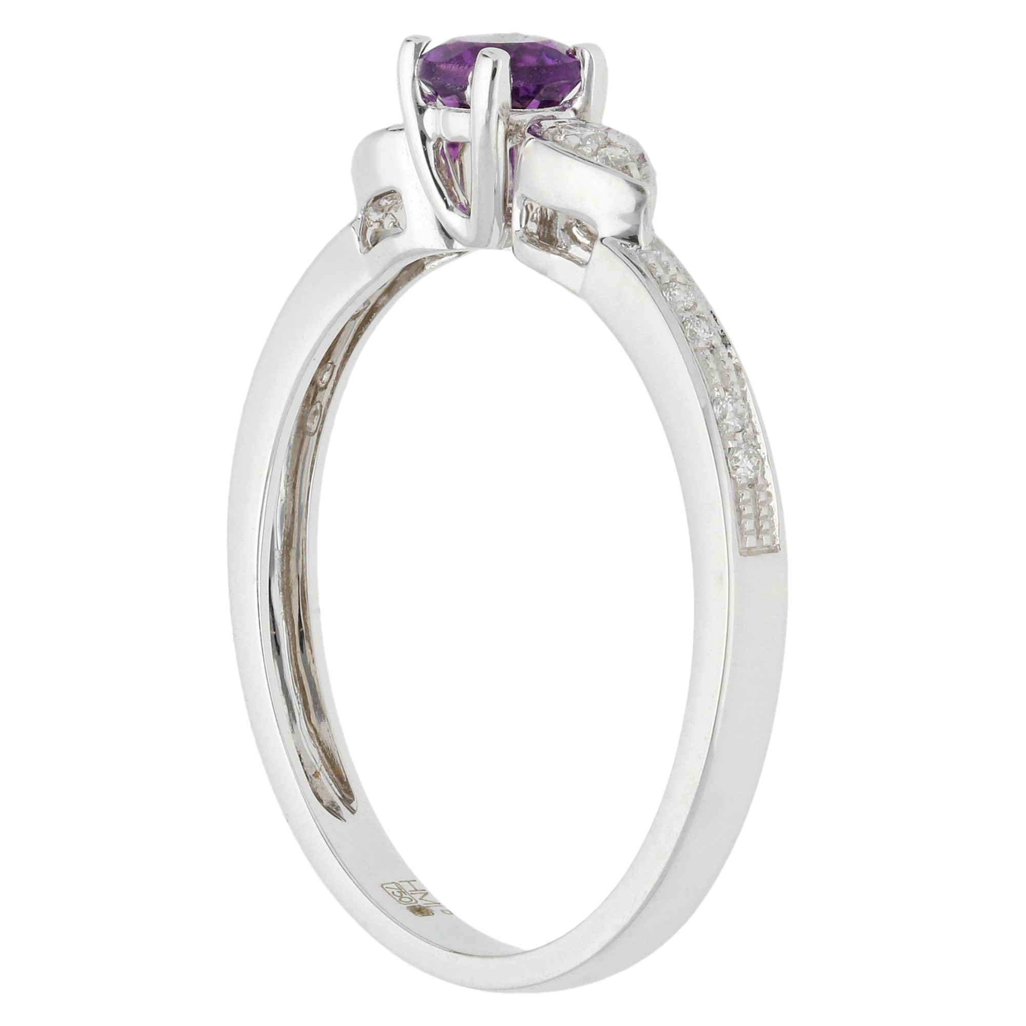 Featuring a round amethyst, with twinkling diamond foliate sides and band, all crafted in a cool white gold. A simply beautiful ring that will bring some glamour to your ensemble, day or night.