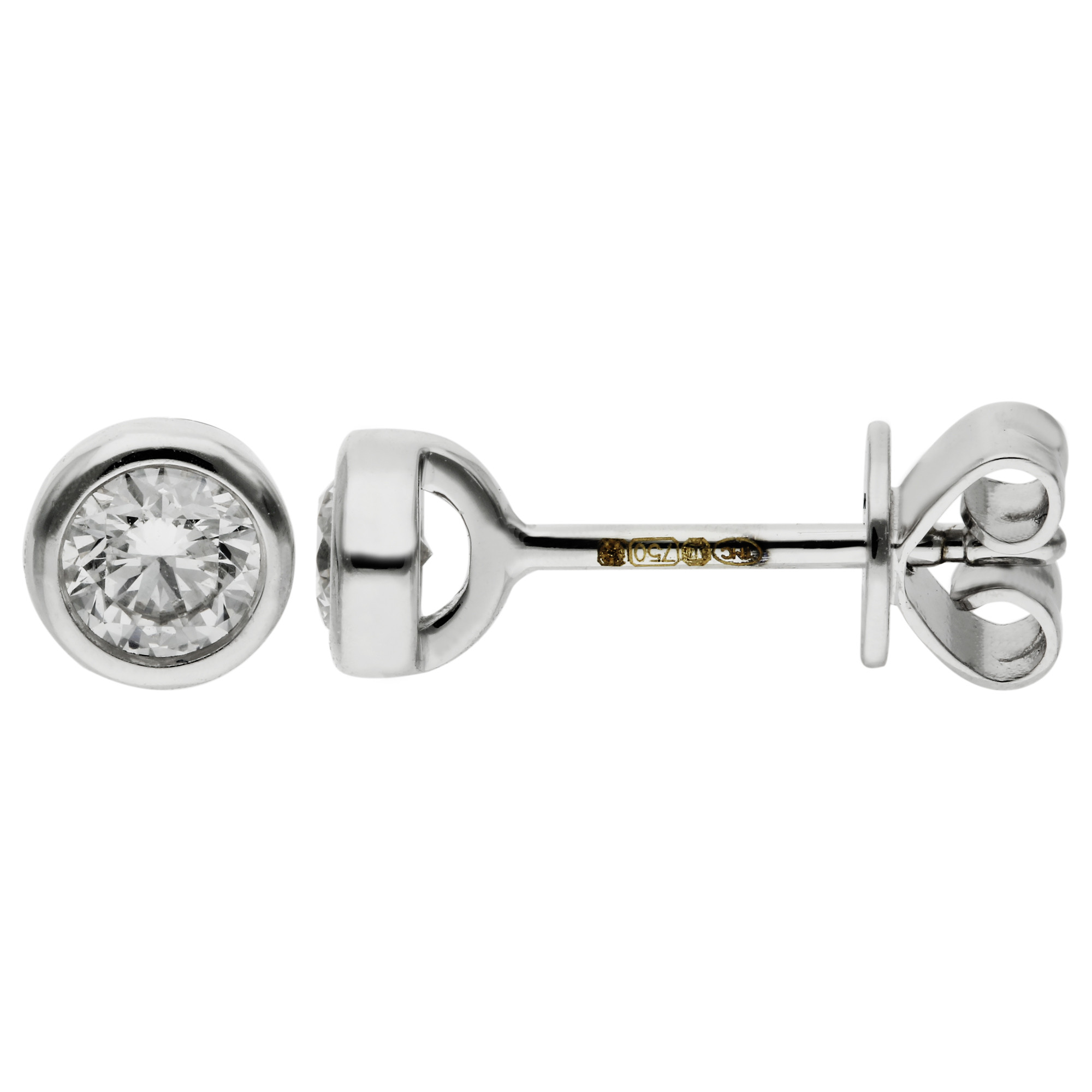 Designed for elegance and practicality, these earrings come equipped with posts and scrolls, providing a secure and comfortable fit suitable for all-day wear. The bezel setting not only enhances the brilliance of the diamonds but also ensures they are held firmly, making these earrings an ideal choice for both everyday luxury and special events.