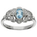 Indulge in the elegance of this stunning 18ct white gold aquamarine and diamond ring, a true masterpiece of craftsmanship and design. The centrepiece of this gorgeous dress ring is a pale blue 0.40ct oval cut aquamarine, securely collet set to showcase its serene beauty. Surrounding the gemstone is an elaborate arrangement of sparkling diamonds, brought to life with intricate swirls and rain drop motifs. The milgrain detailing adds a vintage inspired touch, enhancing the opulent design. Crafted in 18ct white gold, this ring exudes sophistication and luxury, making it perfect for special occasions or as a statement accessory. Whether given as a thoughtful gift or chosen as a self treat, this aquamarine and diamond ring is a timeless addition to any jewellery collection. Its unique and eye catching design ensures it will be treasured for years to come, adding a touch of glamour to any outfit.