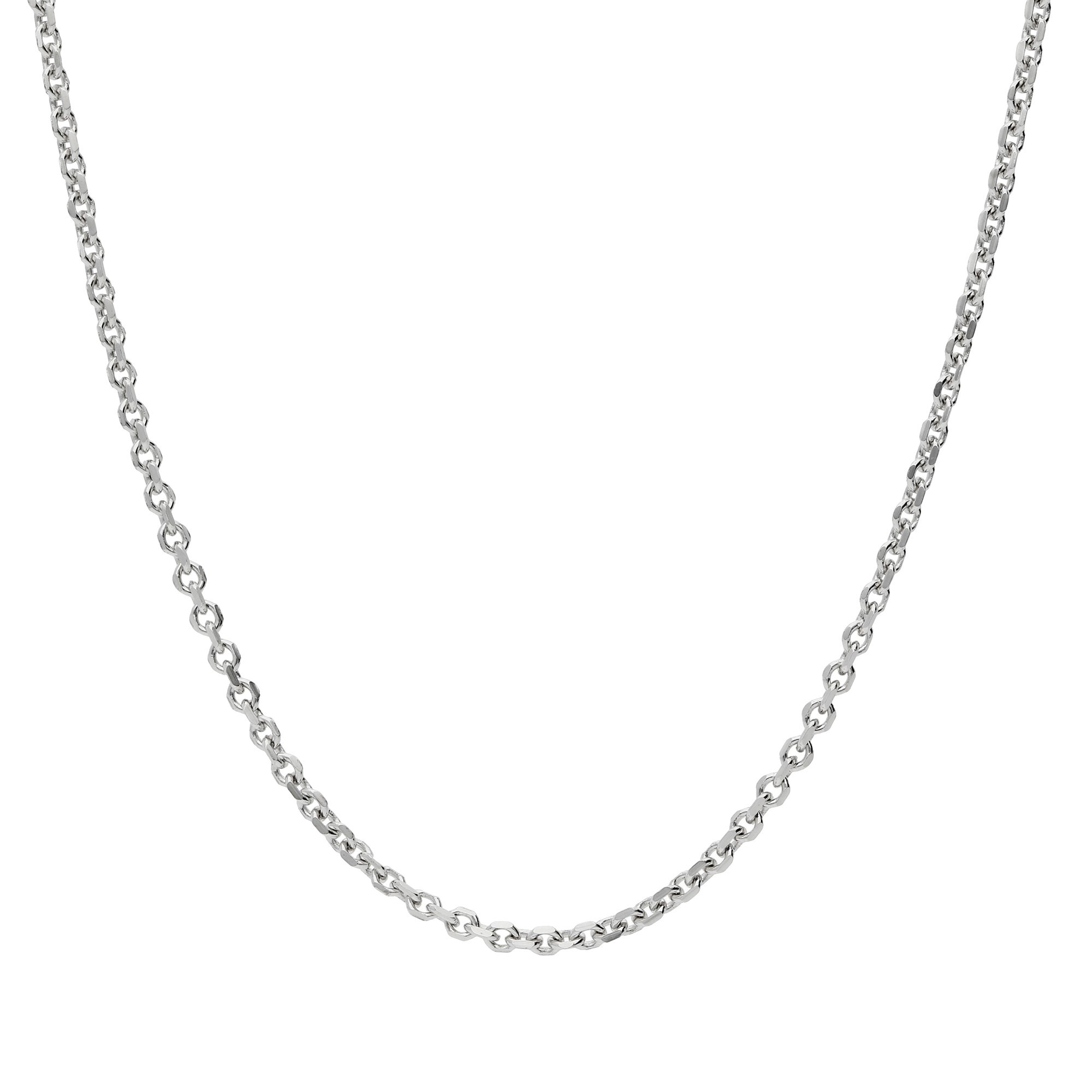 Introducing our 1.46mm Faceted 18ct White Gold Trace Chain, a masterpiece of British craftsmanship. This elegant chain is constructed from premium 18ct white gold, featuring closely linked, faceted links that produce a delicate shimmering effect. The precise faceting of each link ensures that light is beautifully captured and reflected, enhancing the overall sparkle of the chain. Its sleek white gold composition offers a modern and sophisticated look, making it the ideal accessory to complement any treasured pendant. Perfect for those who appreciate the finer details, this trace chain combines durability with a luxurious aesthetic, ensuring it remains a cherished part of your jewellery collection.