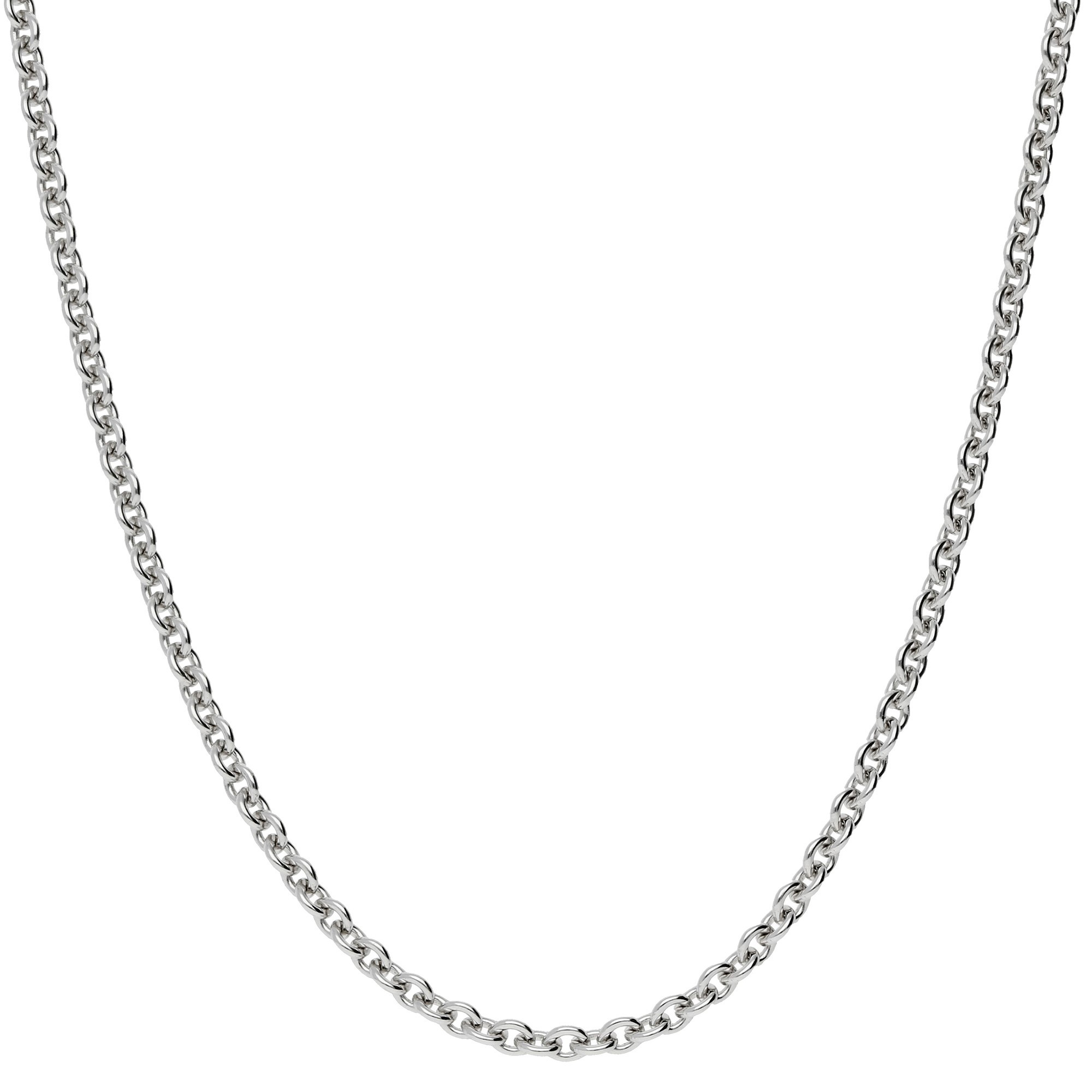 This chain is perfect for layering with other pieces or wearing on its own as a dainty and understated statement piece. The classic white gold colour complements any outfit and adds a touch of elegance and modernity to any style.