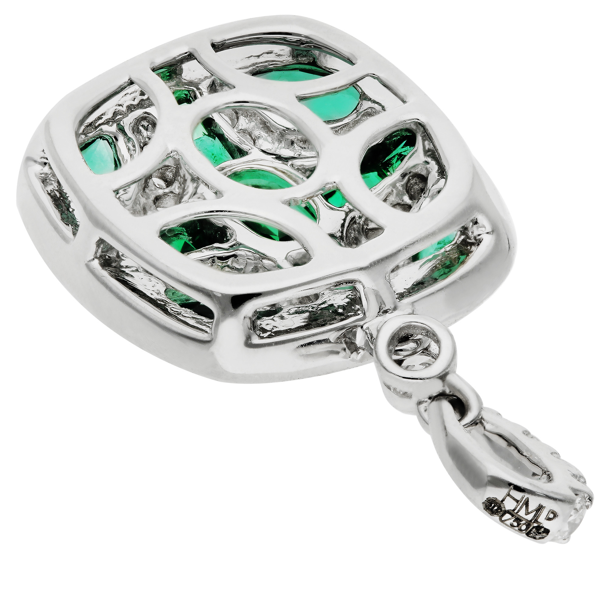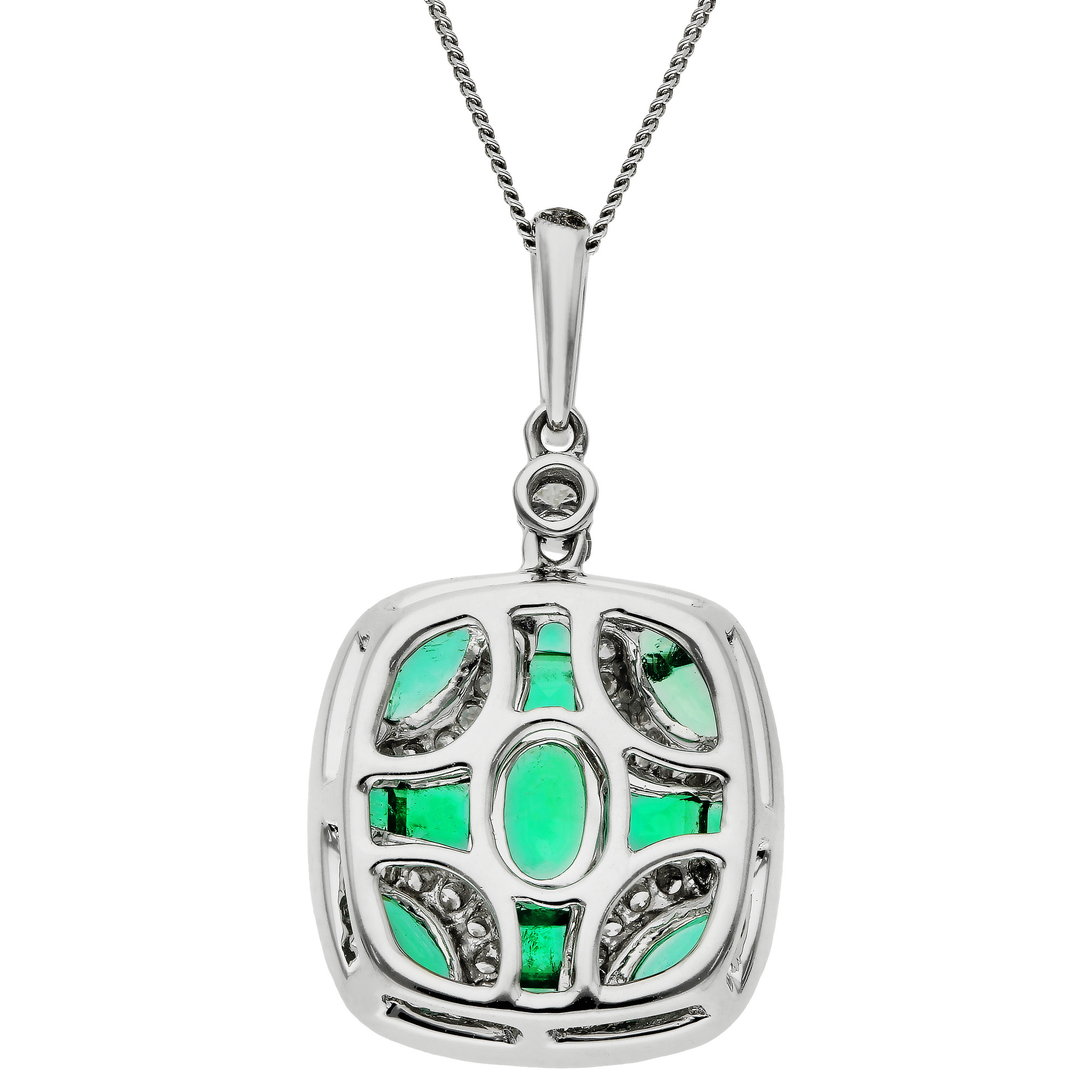 18ct White Gold Diamond & 1.15ct Emerald Pendant