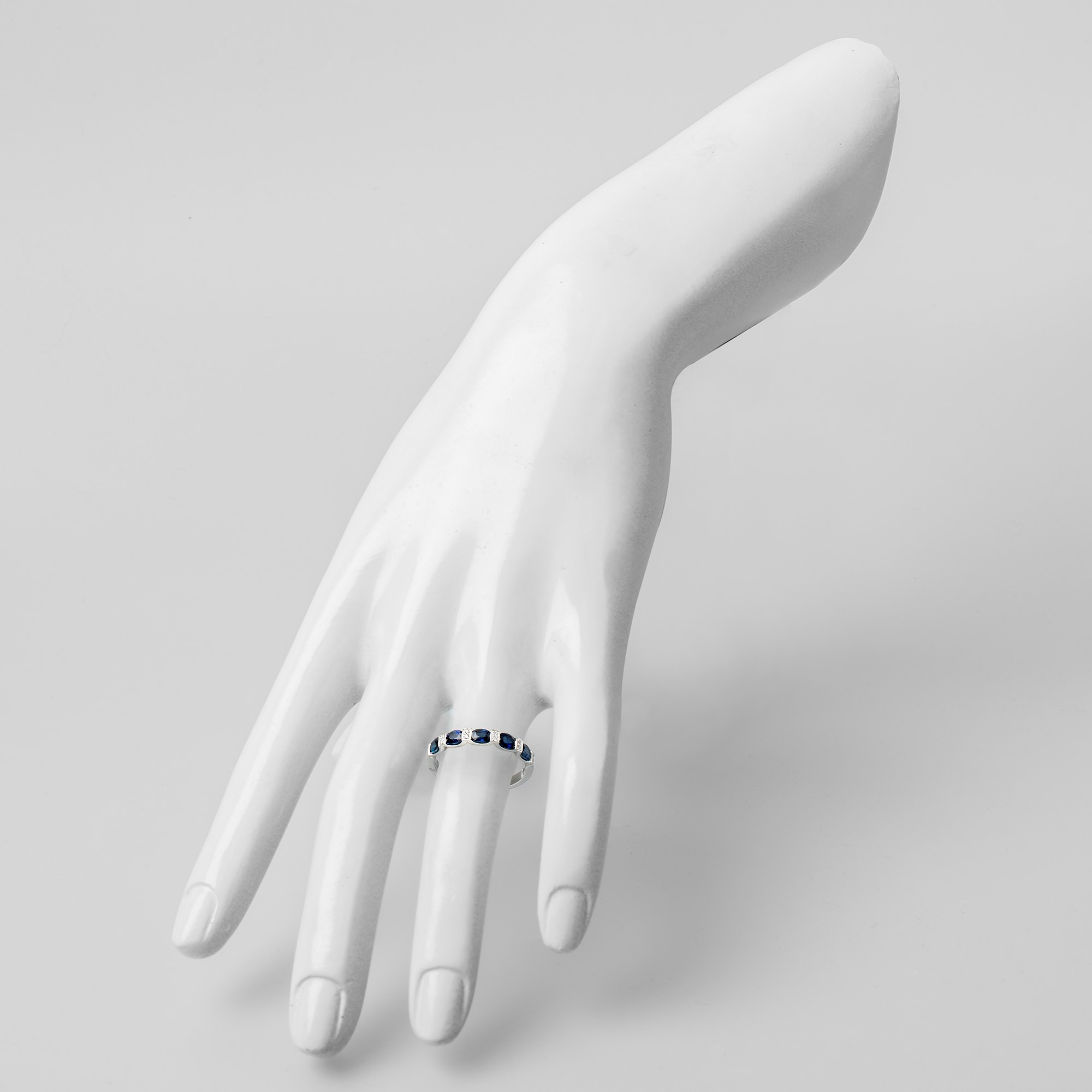 18ct White Gold Diamond and Sapphire Half Eternity Ring - N