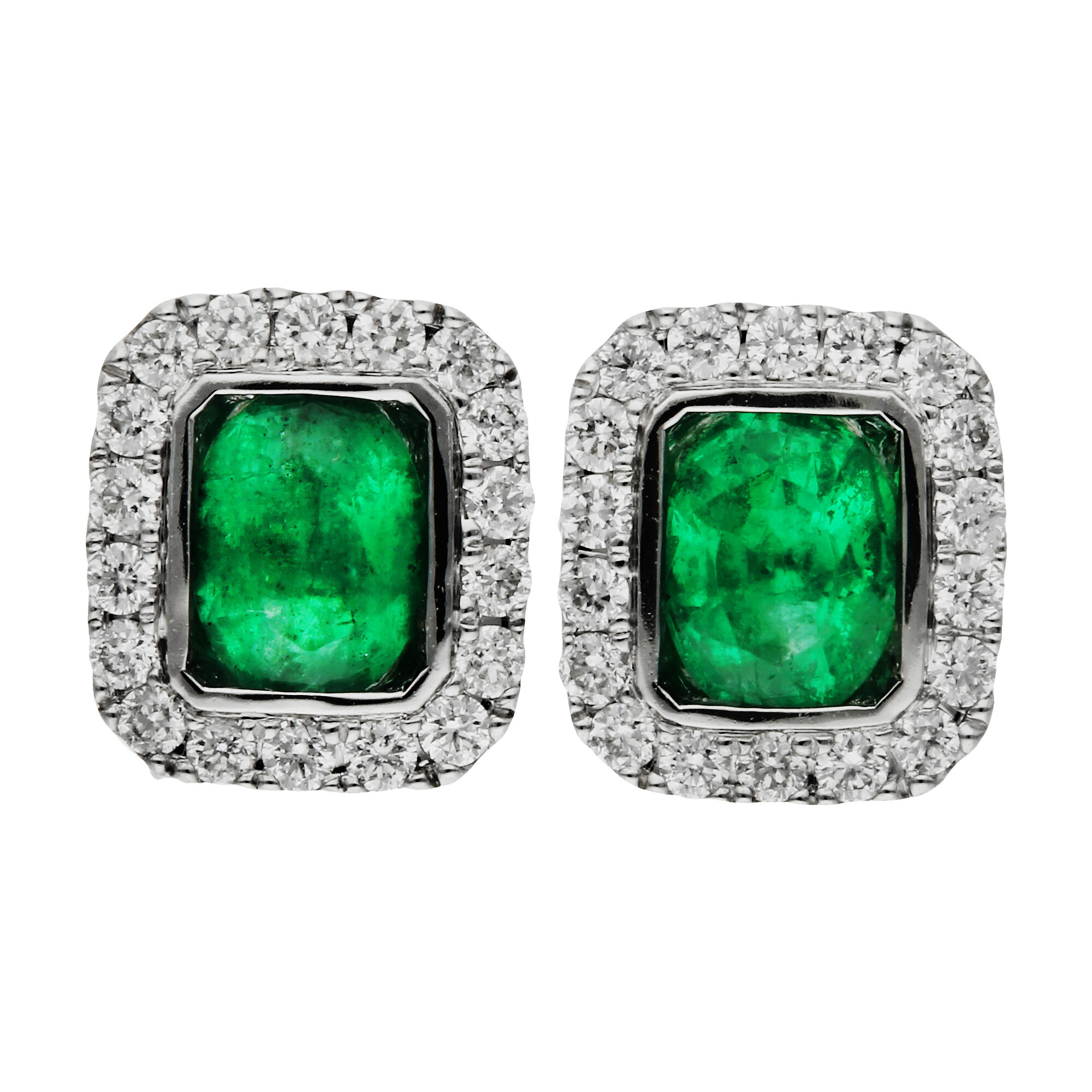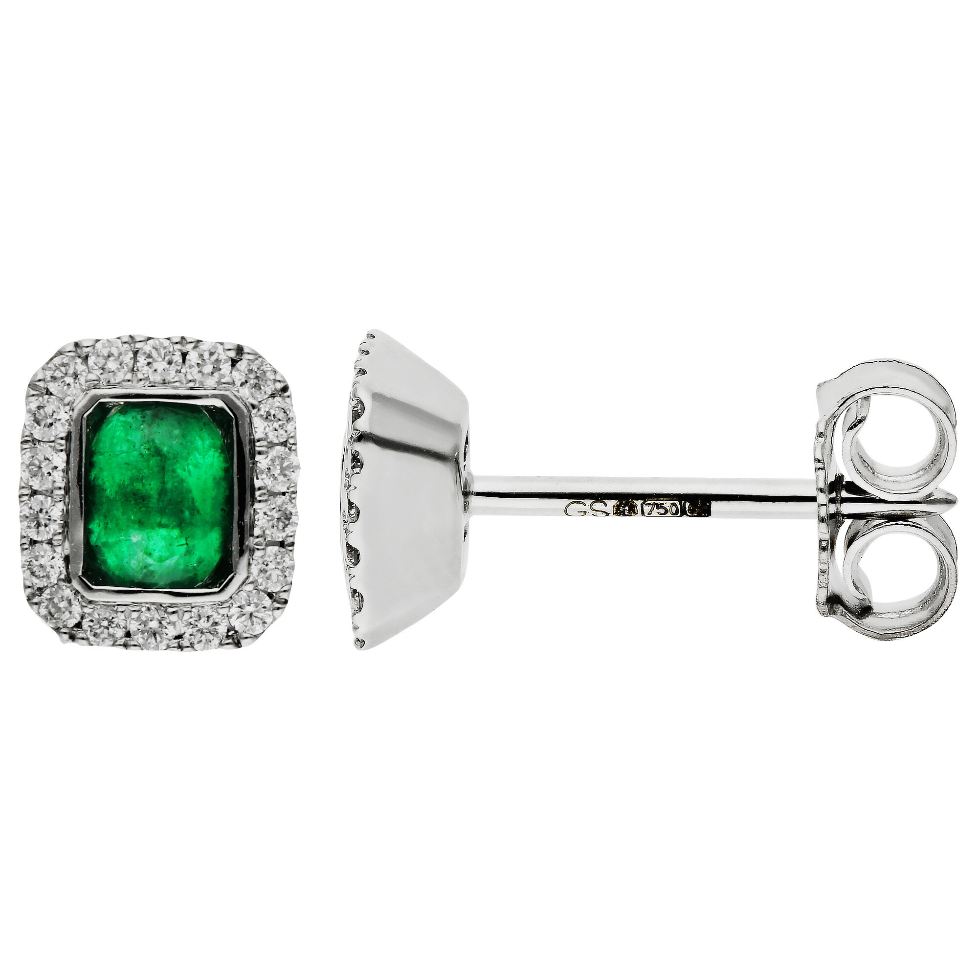 Experience the timeless elegance of our 18ct White Gold Diamond and Emerald Earrings, designed to captivate and charm. Each earring features an oval faceted emerald, set within a rectangle of lustrous white gold. These exquisite gemstones are highlighted by a surrounding halo of sparkling diamonds, creating a dazzling display of light and colour. Designed as stud earrings, they are comfortable to wear and secured with posts and scroll backs, ensuring they stay in place all day or night. Perfect for any occasion, these earrings add a touch of glamour to both daytime and evening attire, making them a wonderful gift or a luxurious addition to your own jewellery collection.