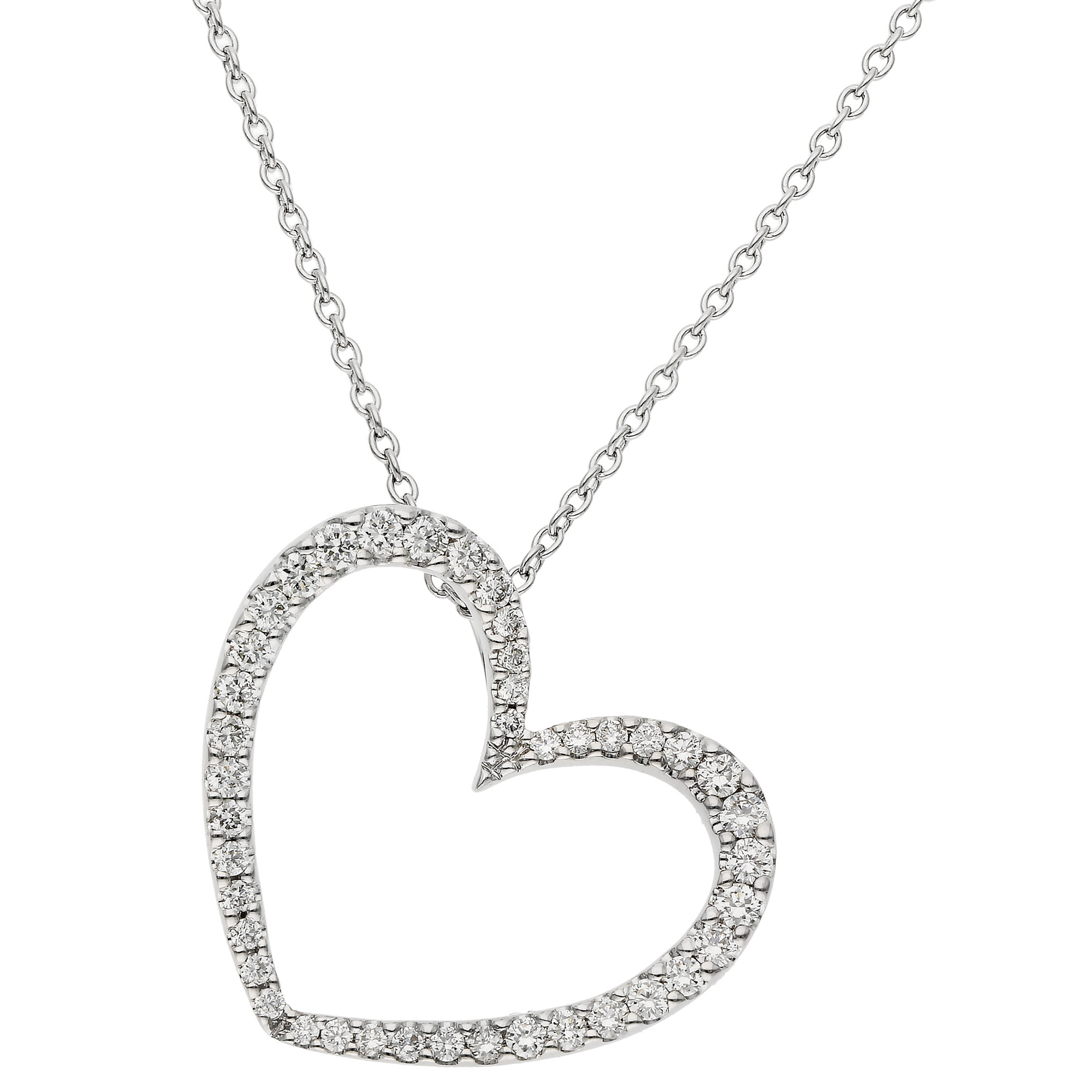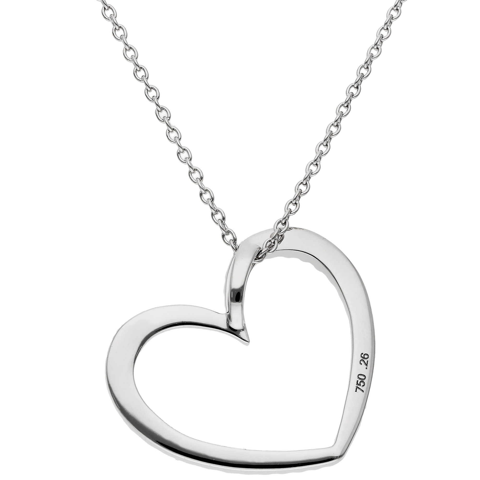 This elegant pendant offers a timeless symbol of love with an added touch of luxury. Crafted in rich 18ct white gold, the open heart design is adorned with round brilliant diamonds that trace the outline with gentle radiance. The diamonds total 0.26 carat, providing a refined sparkle that catches the light beautifully without overwhelming the piece. The fine chain threads discreetly through the back of the pendant, allowing the heart to rest at a charming slightly off centre angle for a graceful and contemporary look. Perfect for everyday wear or as a meaningful finishing touch to a special outfit, this pendant makes a wonderful gift for birthdays, anniversaries or any moment you wish to celebrate. Its classic style ensures it will remain a cherished favourite for years to come, while the diamond detail brings a sense of sophistication that feels both modern and enduring.