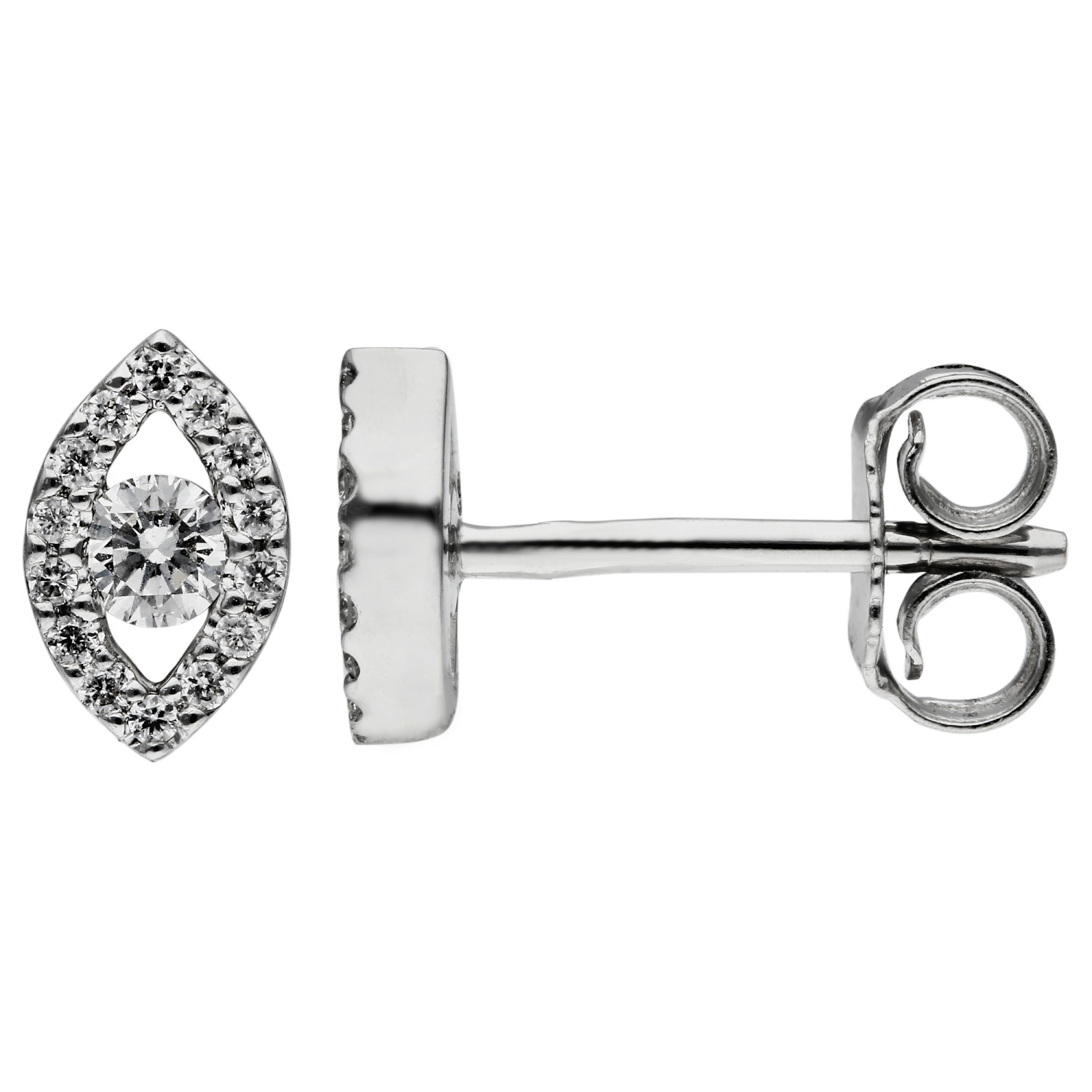 Discover the timeless elegance of these 18ct White Gold & 0.25ct Diamond Earrings. These women's earrings feature eye shaped studs, each beautifully set with sparkling diamonds totalling 0.25ct. The unique design and brilliant diamonds create a sophisticated and luxurious look, perfect for any occasion.