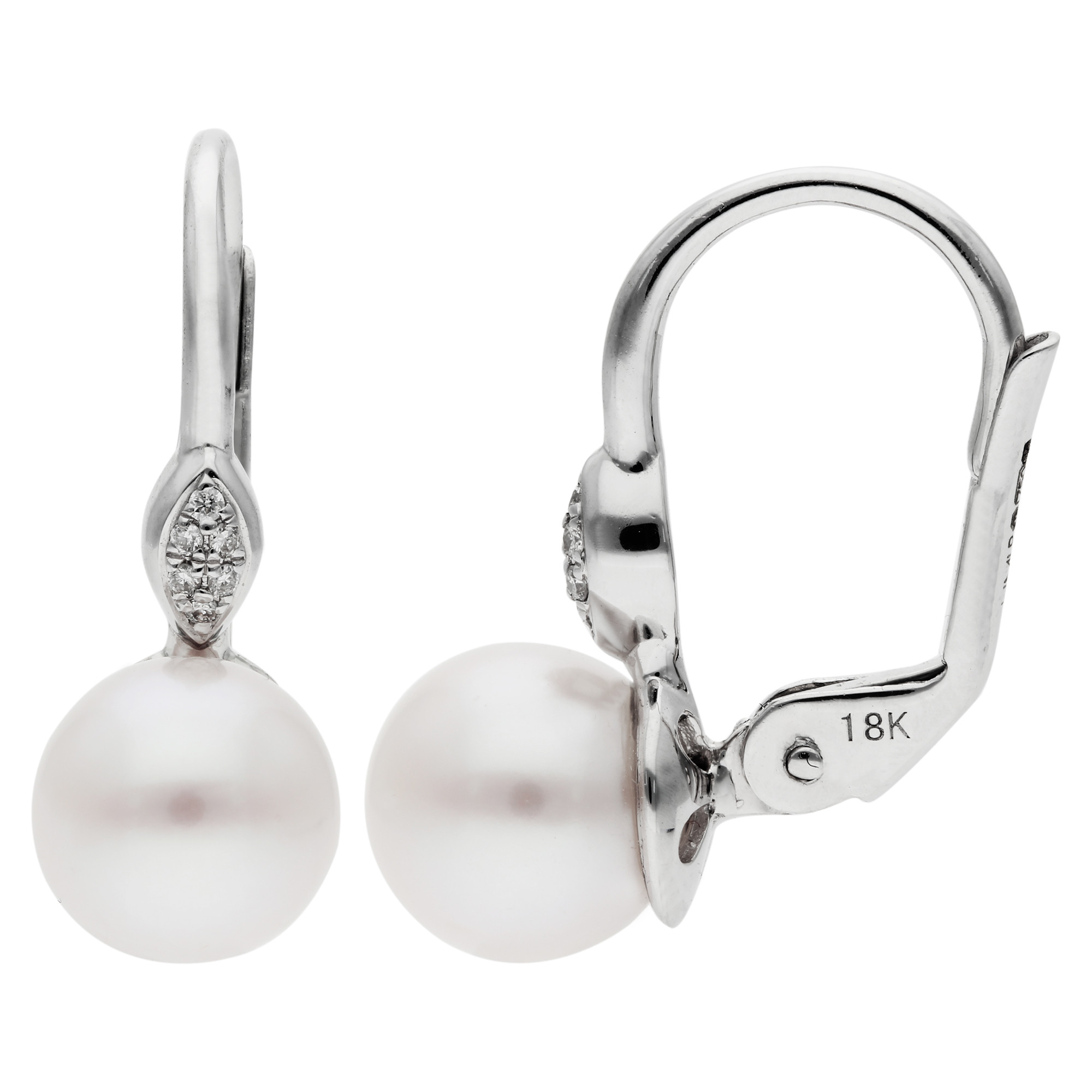 Enhance your elegance with our 18ct White Gold Diamond & Pearl Earrings. These stunning drop earrings feature round cultured pearls, each held securely on a sparkling diamond surmount. Crafted with precision, the 18-carat white gold setting beautifully complements the lustrous pearls and dazzling diamonds.