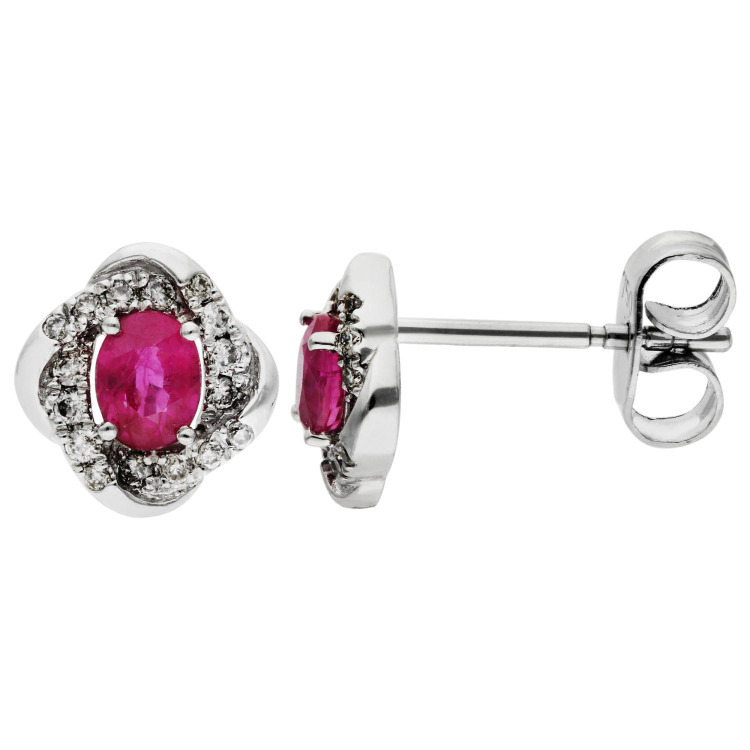 18ct White Gold Diamond & 0.45ct Ruby Earrings