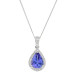 This stunning 18ct white gold pendant is a timeless piece of jewellery that captures elegance and sophistication. At the heart of the design is a striking pear shaped tanzanite, admired for its vibrant violet blue hue and exceptional clarity. The tanzanite is gracefully framed by a halo of brilliant cut diamonds that sparkle with every movement, creating a beautiful contrast and an eye catching finish. The pendant is suspended from a sleek and polished white gold curb chain, offering a refined look that suits both day and evening wear. Ideal as a thoughtful gift for a December birthday, a milestone anniversary or any special celebration, this pendant makes a lasting impression. Whether worn alone for understated elegance or paired with matching earrings for a coordinated set, this exquisite pendant is a versatile and meaningful addition to any jewellery collection. Supplied in a beautiful presentation box, ready to gift.