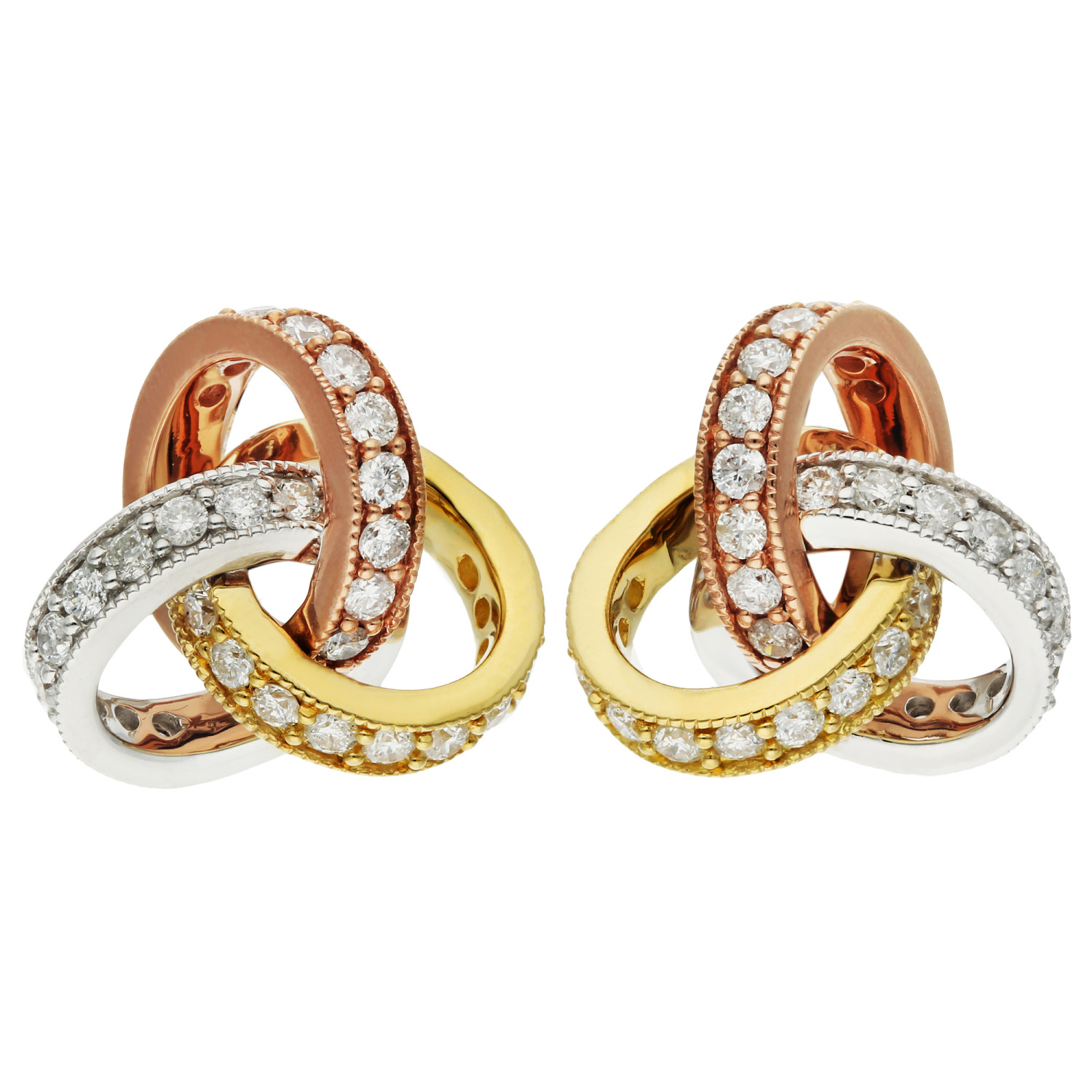 0.77ct Diamond & 18ct White, Rose & Yellow Gold Knot Earrings