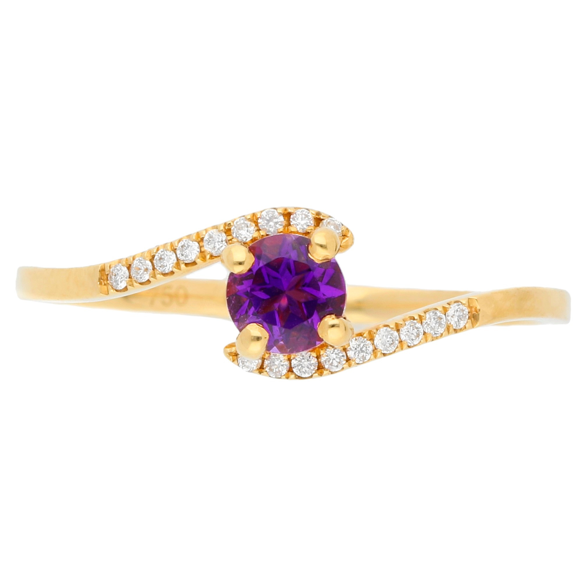 18ct Yellow Gold Amethyst & Diamond Fancy Crossover Ring-N