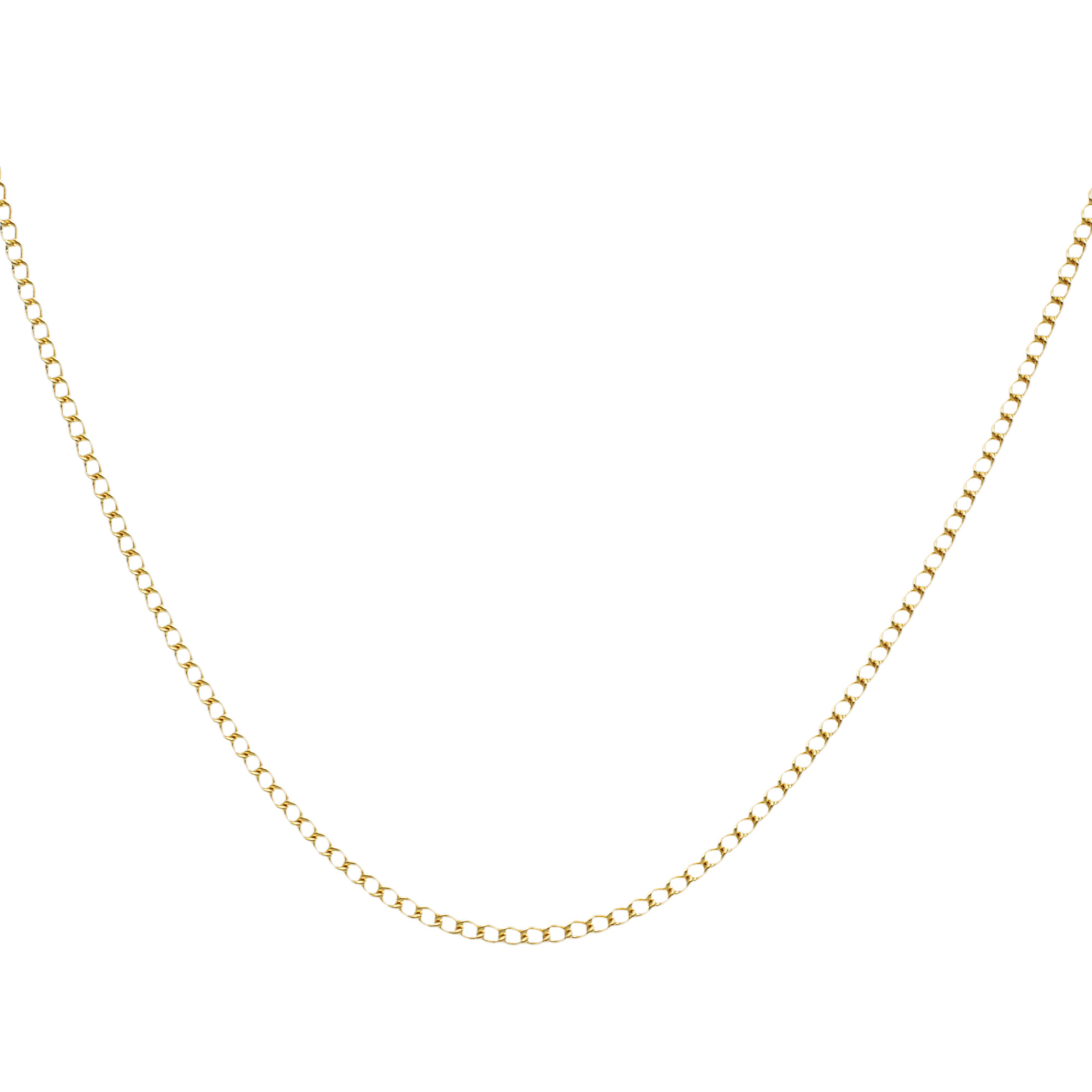 A classic 18ct yellow gold curb chain (gauge 1.20mm) fitted with a sturdy 5.5mm bolt ring. Perfect for pendants.