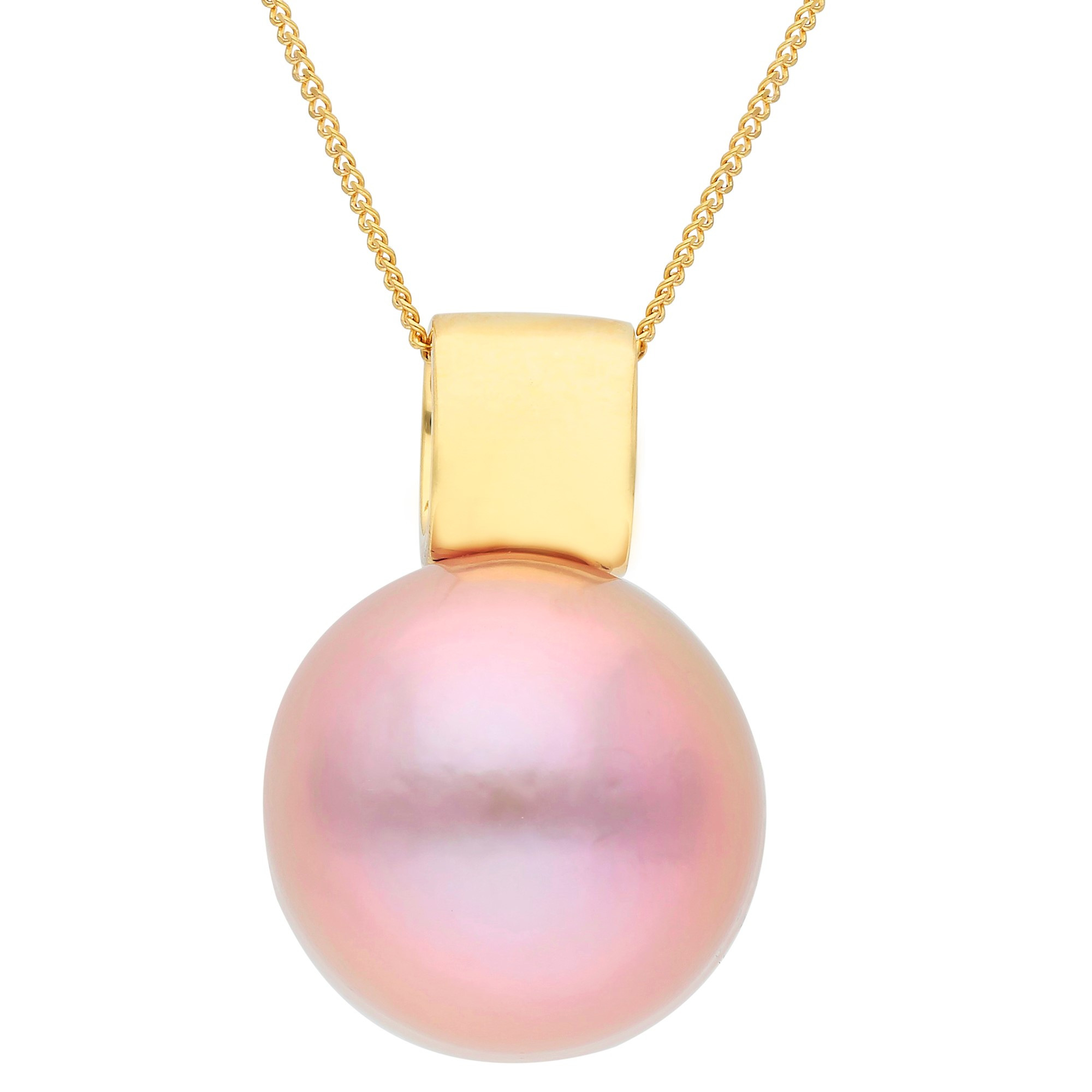 Step into a world of opulence with our 18ct Yellow Gold Pearl Pendant, a masterpiece of craftsmanship designed to captivate and charm. This pendant features a plump, round pink cultured river pearl exuding a warm, inviting glow. It is elegantly held by a yellow gold tube bail encrusted with finely set diamonds, adding a dazzling sparkle to the soft pearl lustre. A matching yellow gold pendant chain completes the ensemble, making this piece a luxurious choice for sophisticated gatherings or as an exceptional gift for someone special.