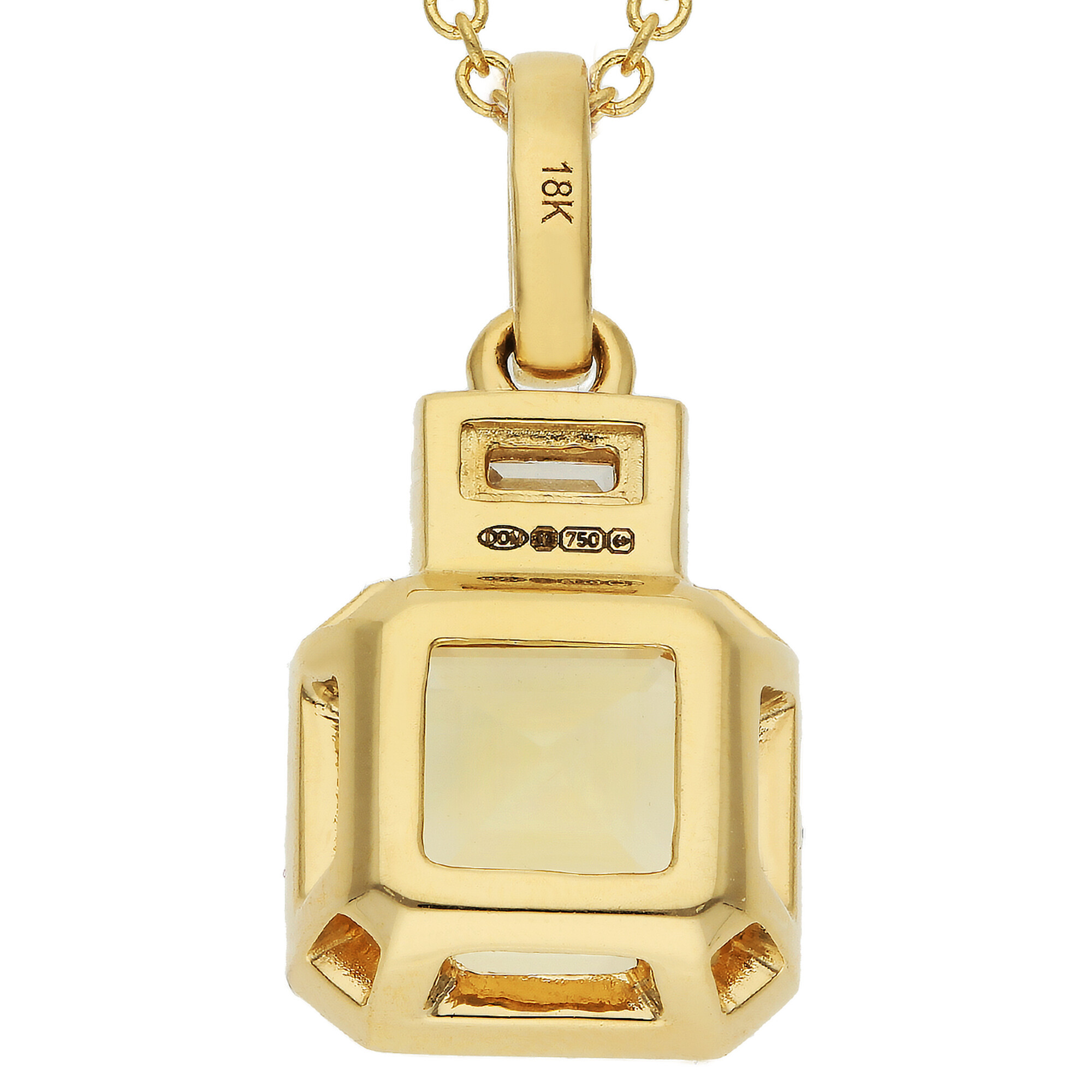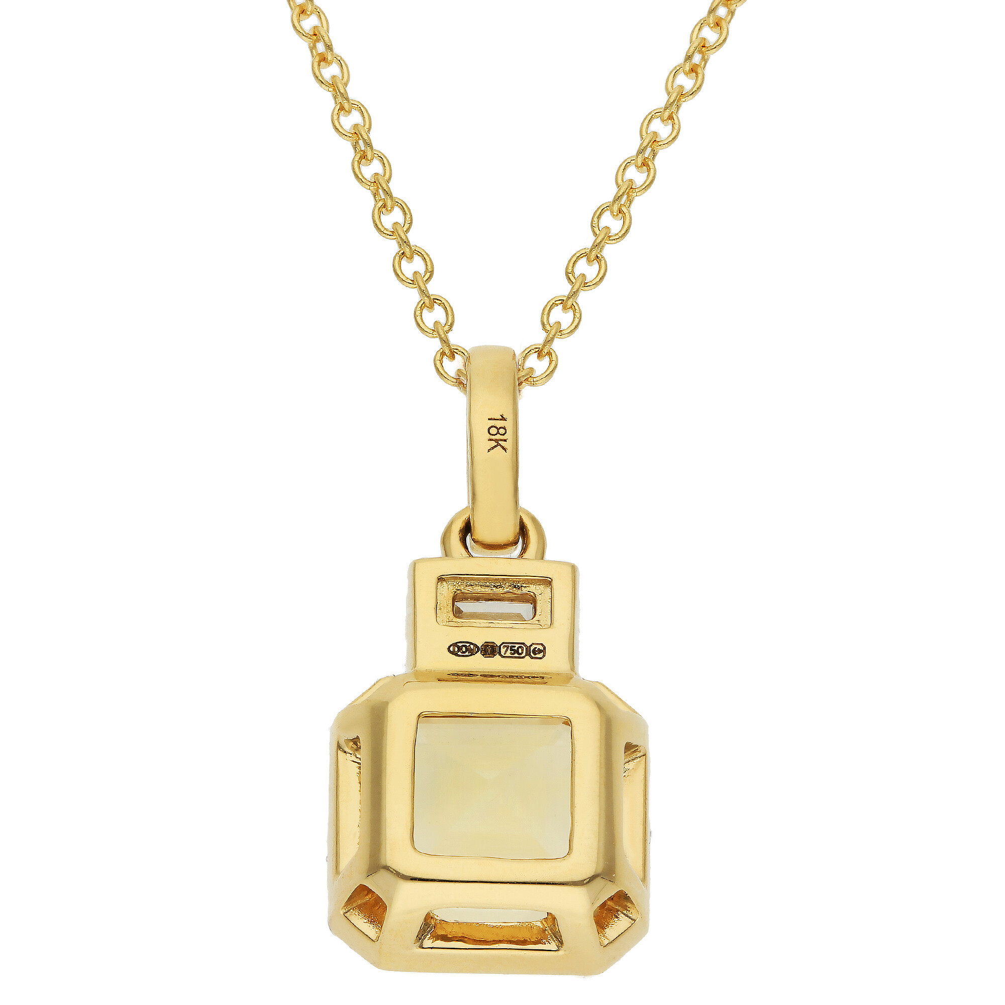 Radiating warm golden hues, this elegant 18ct yellow gold pendant is a stunning showcase of refined design and vibrant colour. A striking square emerald cut citrine is bezel set in rich yellow gold, allowing its honey toned brilliance to shine from every angle. Positioned above is a sleek baguette cut diamond, also bezel set, adding a sophisticated sparkle that perfectly complements the citrine's warmth.