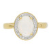 Celebrate timeless elegance with this stunning 18ct yellow gold opal and diamond ring. Featuring a captivating oval opal cabochon as its centrepiece, this ring showcases the opal's beautiful play of colours, beautifully highlighted by a sparkling diamond halo. The intricate milgrain edging adds a vintage inspired touch, enhancing the ring's overall charm and sophistication. The opal and diamonds are securely set on a sleek yellow gold shank, complemented by tapered shoulders that create a refined and graceful silhouette. Perfect for marking special occasions, this ring is an ideal gift for an October birthday or as a thoughtful token of love. Its classic yet striking design makes it a versatile addition to any jewellery collection. Whether worn for everyday elegance or formal events, this opal and diamond ring is a timeless piece that will be cherished forever.
