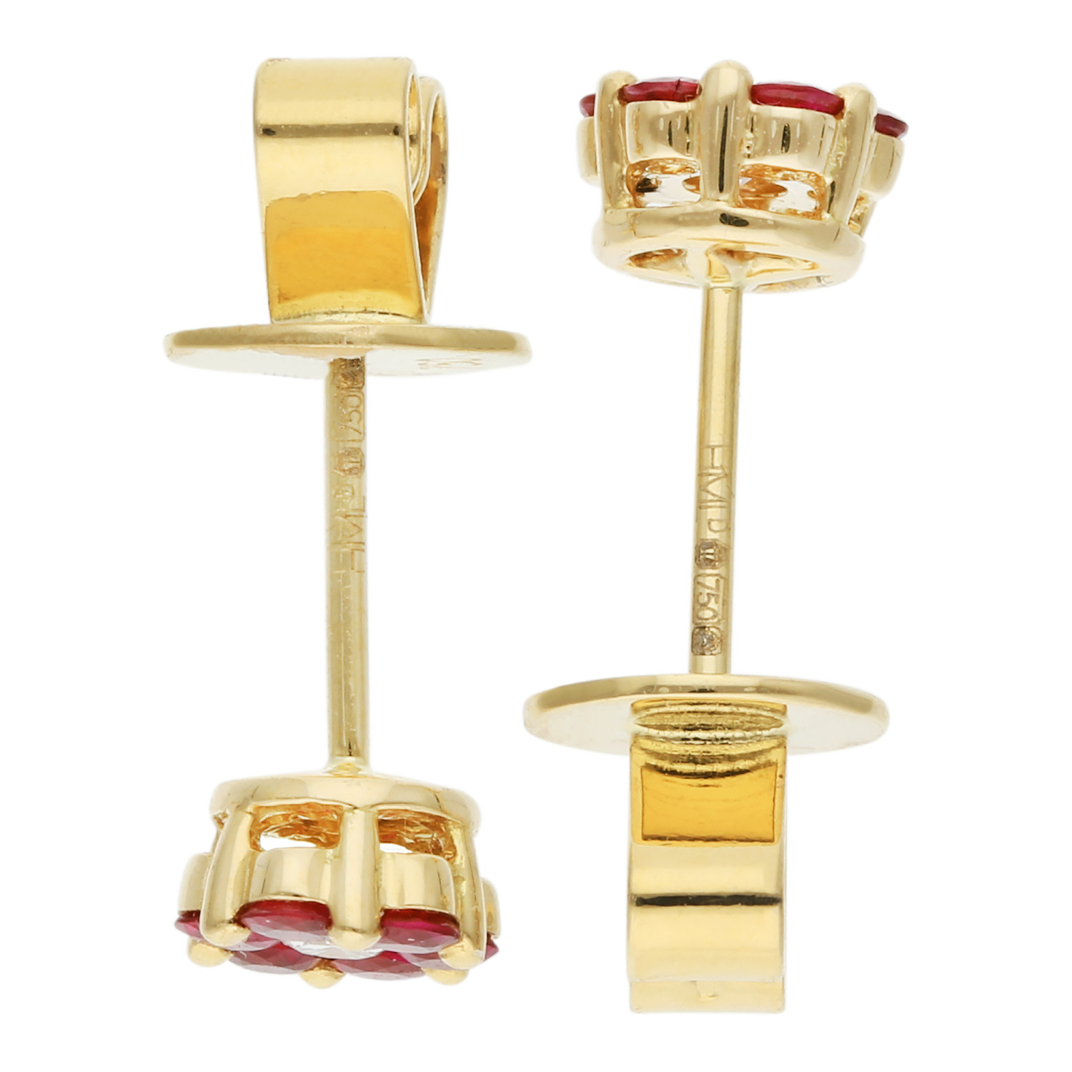 These stud earrings are expertly crafted in luxurious 18ct yellow gold, enhancing the deep red of the rubies and the sparkle of the diamond at the centre. The classic posts and butterfly backs ensure a secure and comfortable fit, making these earrings perfect for both everyday wear and special occasions.