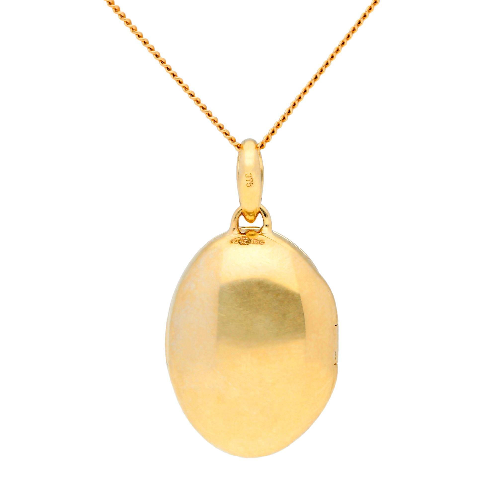 Cherish your memories with our elegant 9ct yellow gold locket, beautifully crafted to add a touch of vintage charm to your collection. This exquisite piece features an oval shape adorned with a delicate leaf design, intricately embellished with tiny accent diamonds that catch the light and sparkle with every movement. The locket is suspended from a polished bail and comes complete with a matching yellow gold chain, providing a secure and stylish way to keep your loved ones close to your heart. Ideal for anniversaries, birthdays, or as a special keepsake, this diamond locket combines timeless elegance with personal sentiment, making it a perfect gift or treasured addition to your jewellery box.