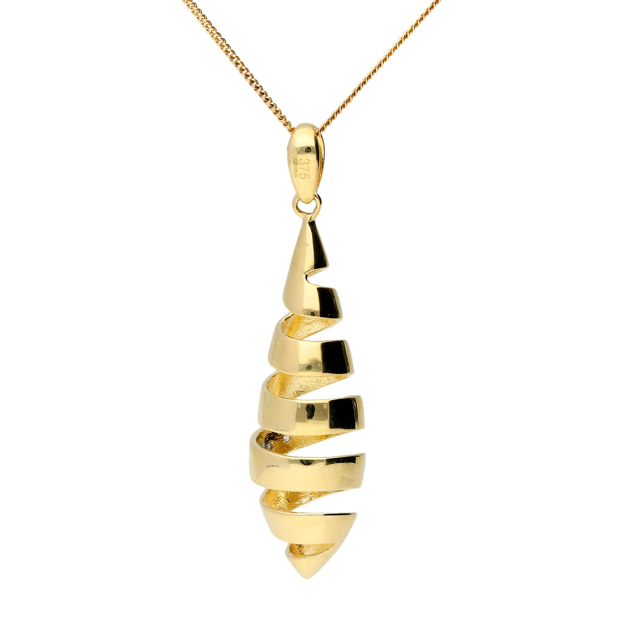 Discover the mesmerizing charm of our 9ct yellow gold and diamond pendant. This unique piece features an elliptical spiral design crafted in lustrous yellow gold, adorned with a delicate swirl of tiny accent diamonds that capture the light beautifully. The pendant is elegantly suspended from a polished bail and comes with a complementary chain, making it a ready-to-wear addition to any jewellery collection. Perfect for those who appreciate intricate designs and a touch of sparkle, this pendant adds a sophisticated flair to both day and evening wear. Ideal for gifting or as a personal treat, it’s sure to become a cherished piece in your jewellery repertoire.