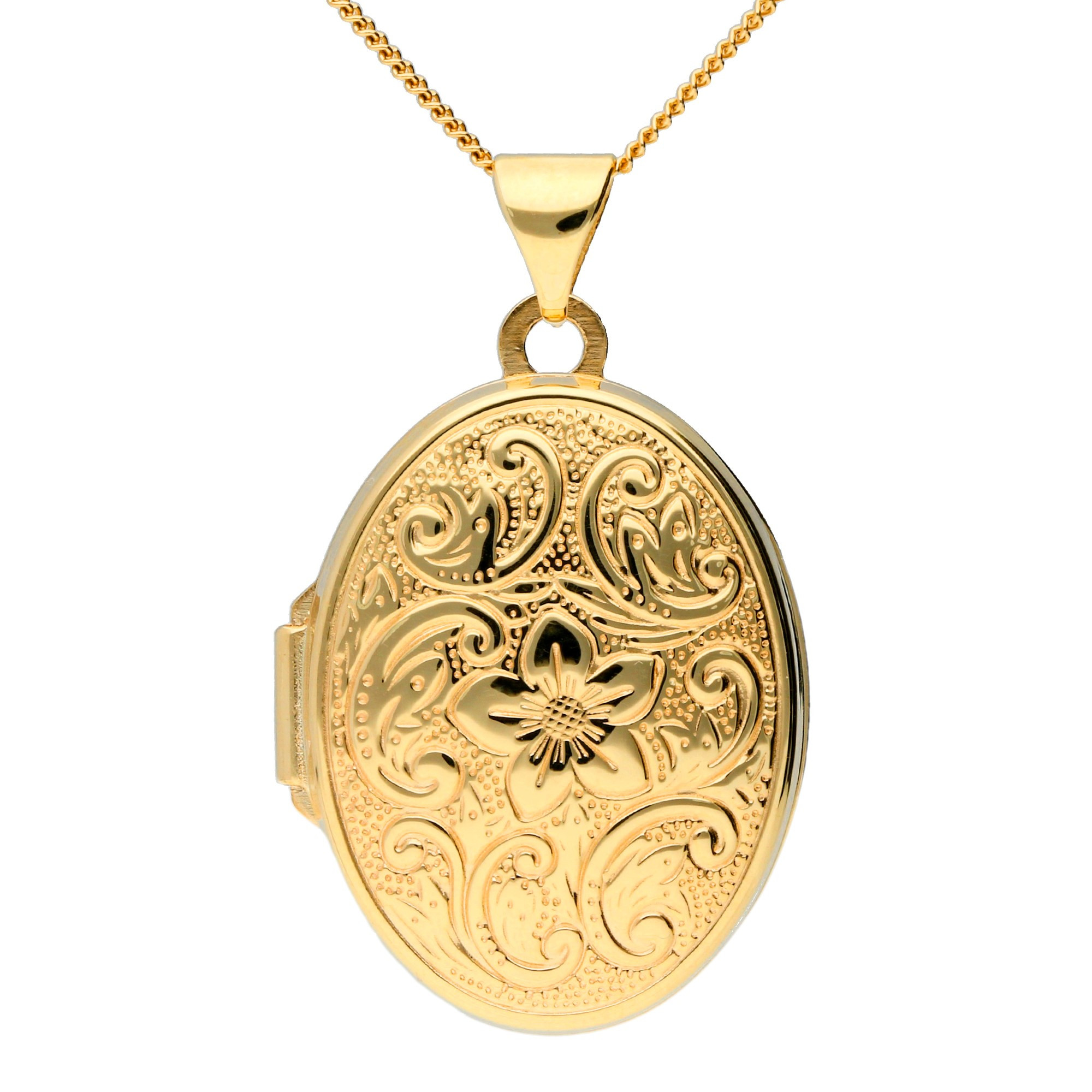 9ct Yellow Gold Flower Oval Locket