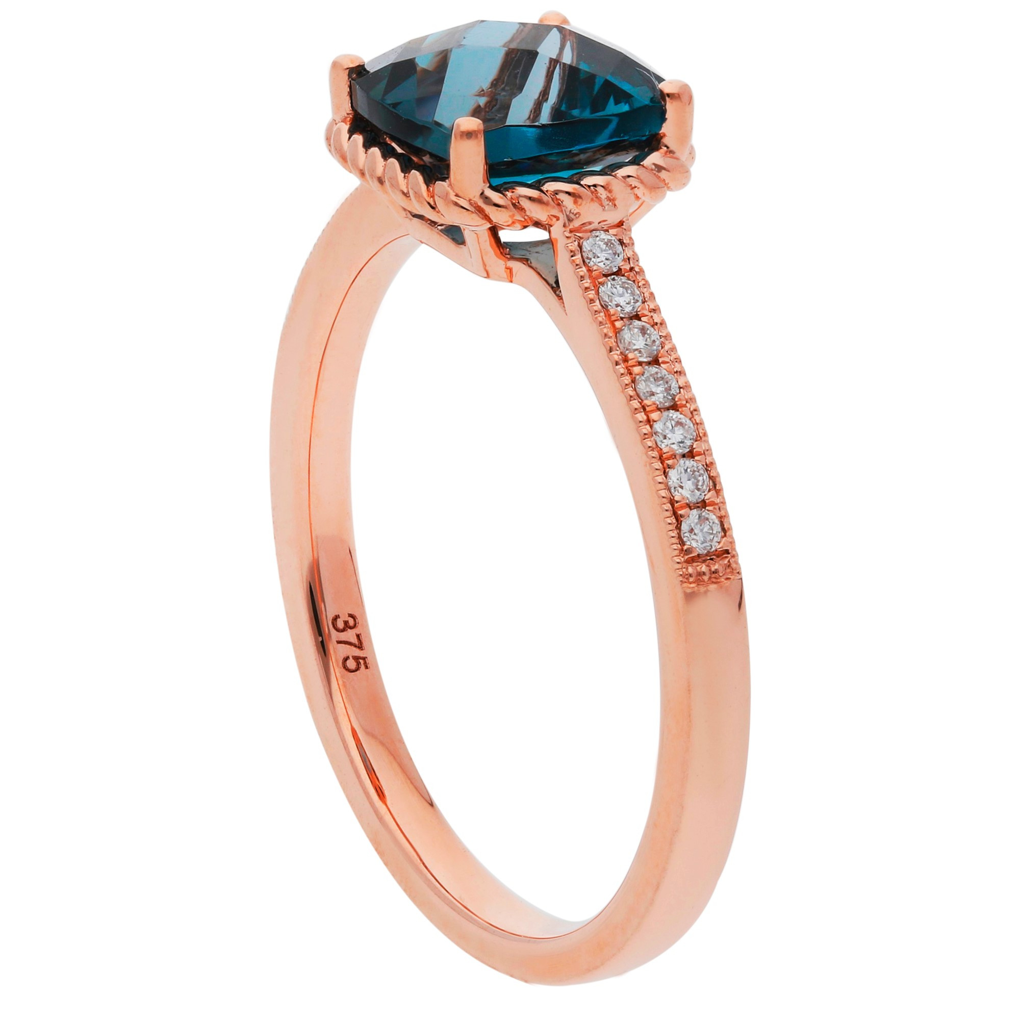 9ct Rose Gold London Blue Topaz & Diamond Cushion Ring - N