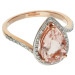 Indulge in the soft elegance of this 9ct Rose Gold Morganite and Diamond Ring. At its centre, a stunning pear shaped morganite gemstone is beautifully faceted to capture the light and radiate delicate pink hues. Encased in a shimmering halo of tiny diamonds, the design is further enhanced by diamond-adorned shoulders that add extra sparkle to this romantic piece. Crafted in warm 9ct rose gold, the band complements the blush tones of the morganite perfectly, creating a sophisticated and timeless look. This exquisite ring is ideal for celebrating special occasions or as a thoughtful gift for a loved one.
