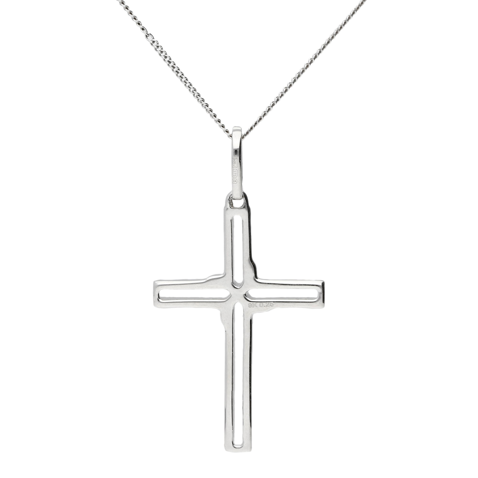 Elevate your style with our 9ct White Gold Diamond Cross Pendant, a beautifully crafted piece that blends timeless faith with contemporary elegance. This pendant features the outline of a cross in polished white gold, adorned with sparkling diamonds that catch the light with every movement. The diamonds extend to the bail, adding an extra touch of brilliance and creating a seamless flow of shimmer. Accompanied by a matching chain available in a choice of lengths, this pendant offers versatility and a perfect fit for any neckline. Ideal for daily wear or as a meaningful gift, this diamond cross pendant is a stunning symbol of faith and sophistication, designed to be cherished for years to come.