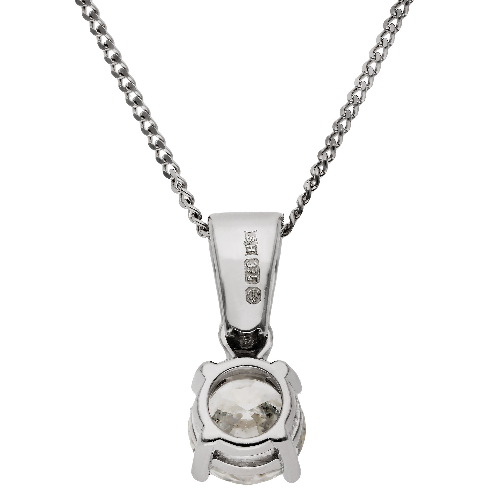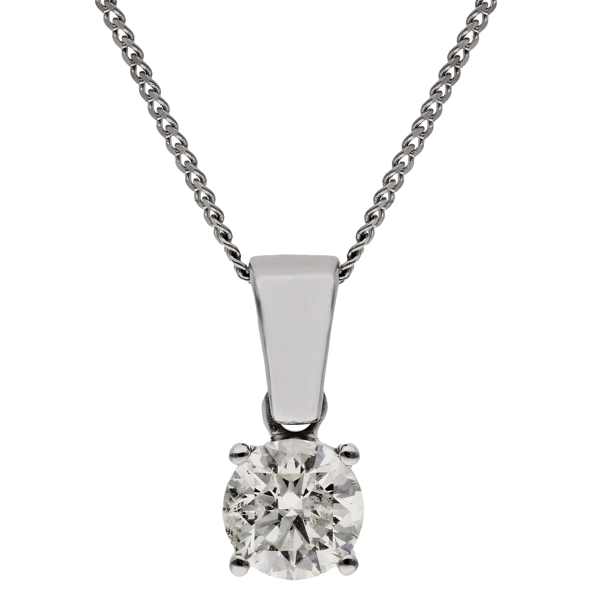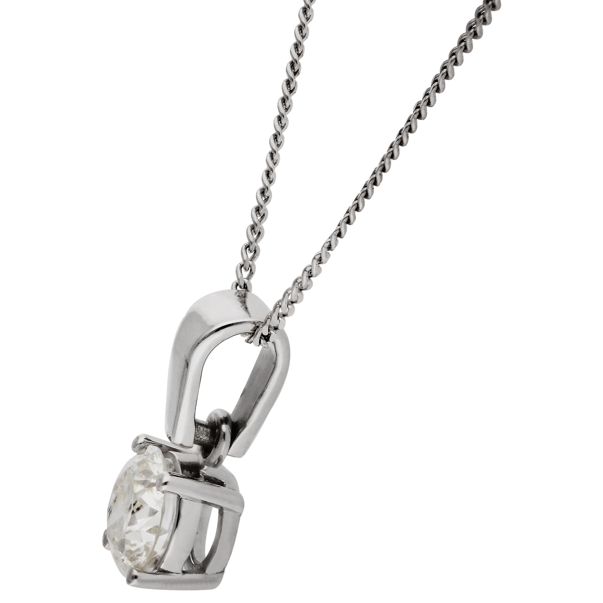 This delicate 9ct white gold pendant features a 0.45 carat round brilliant cut natural diamond, expertly claw set to showcase its radiant sparkle. Suspended from an 18 inch white gold chain, the pendant rests gracefully against the neckline, offering timeless elegance and understated sophistication. The classic solitaire design highlights the brilliance of the diamond, making it a versatile piece that complements both everyday wear and special occasions. Crafted with attention to detail, the pendant combines enduring style with effortless charm, making it an essential addition to any jewellery collection. Perfect as a thoughtful gift for birthdays, anniversaries, or milestones, it embodies both beauty and meaning in one exquisite piece. Its refined simplicity allows it to be worn alone for a subtle statement or layered with other necklaces for a contemporary look. A truly elegant piece that will be treasured for years to come.