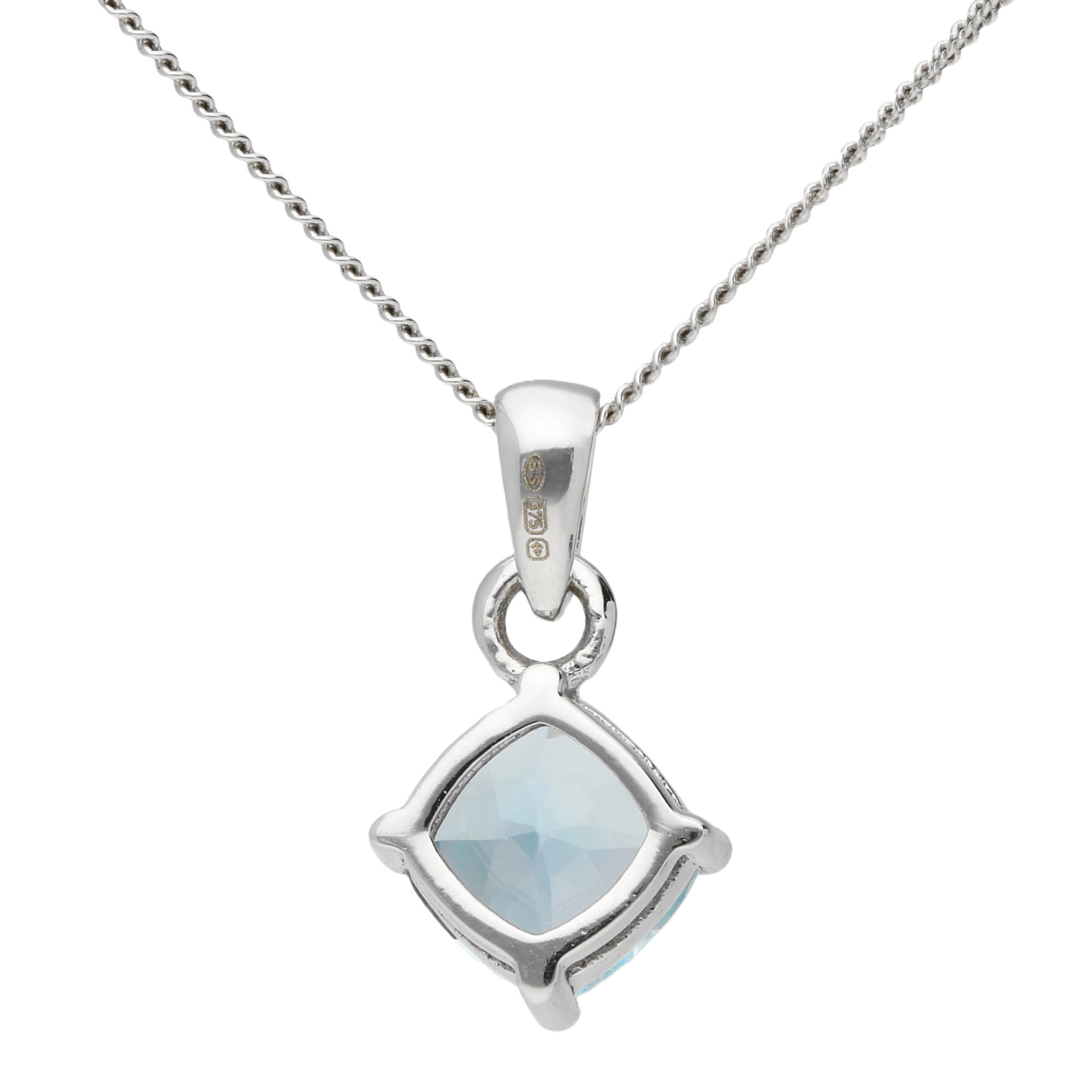 Enhance your jewellery collection with the captivating elegance of our 9ct White Gold Aquamarine Pendant, a perfect piece for those who adore soft, refined hues. This pendant features a stunning cushion cut aquamarine, known for its serene blue colour that evokes a sense of calm and sophistication. Claw set in white gold, the aquamarine is beautifully highlighted, allowing its facets to catch and reflect light with every movement. Suspended from a polished white gold bail, this pendant offers a luxurious yet understated look that complements any style. Complete with a white gold chain, and with various chain lengths available on our website, this pendant brings effortless charm to both everyday and special occasions.