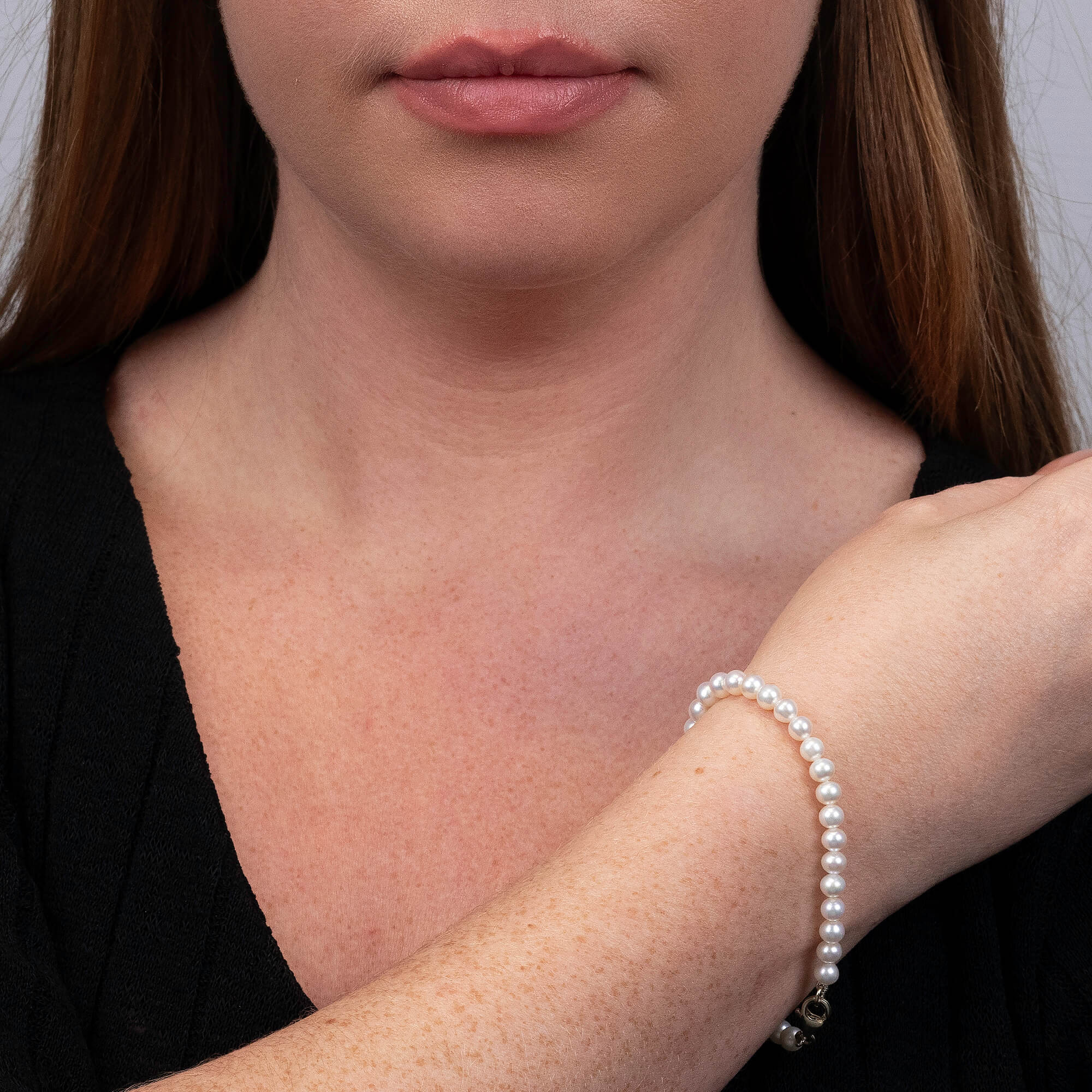 Introducing our exquisite 9ct White Gold Pearl Bracelet, a timeless piece that exudes elegance and sophistication. This bracelet features a string of lustrous white cultured river pearls, each carefully selected for its radiant sheen and smooth finish. The pearls are gracefully connected with a secure 9ct white gold lobster clasp, ensuring a comfortable fit that's easy to fasten. Perfect for weddings, formal events, or adding a touch of class to your everyday attire, this pearl bracelet is a must-have accessory that complements any outfit. Its classic design and high-quality materials make it a cherished gift for any special occasion.