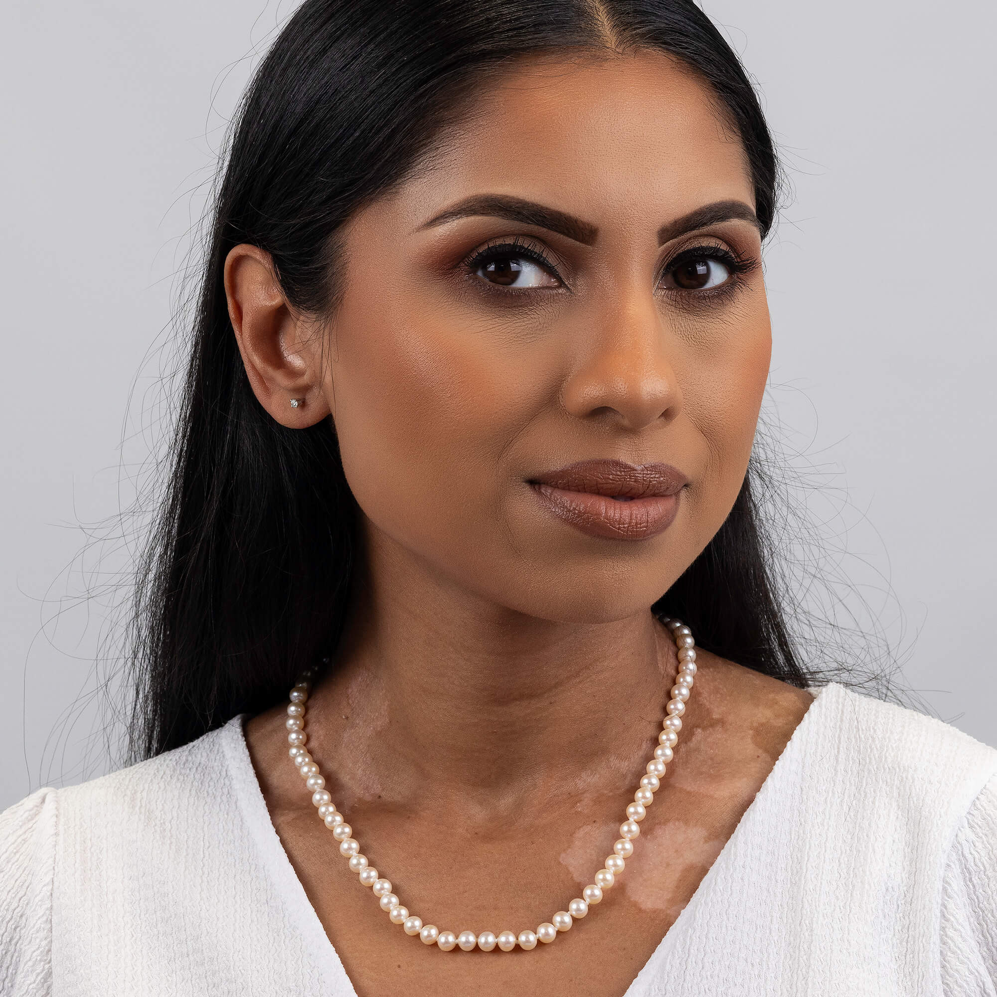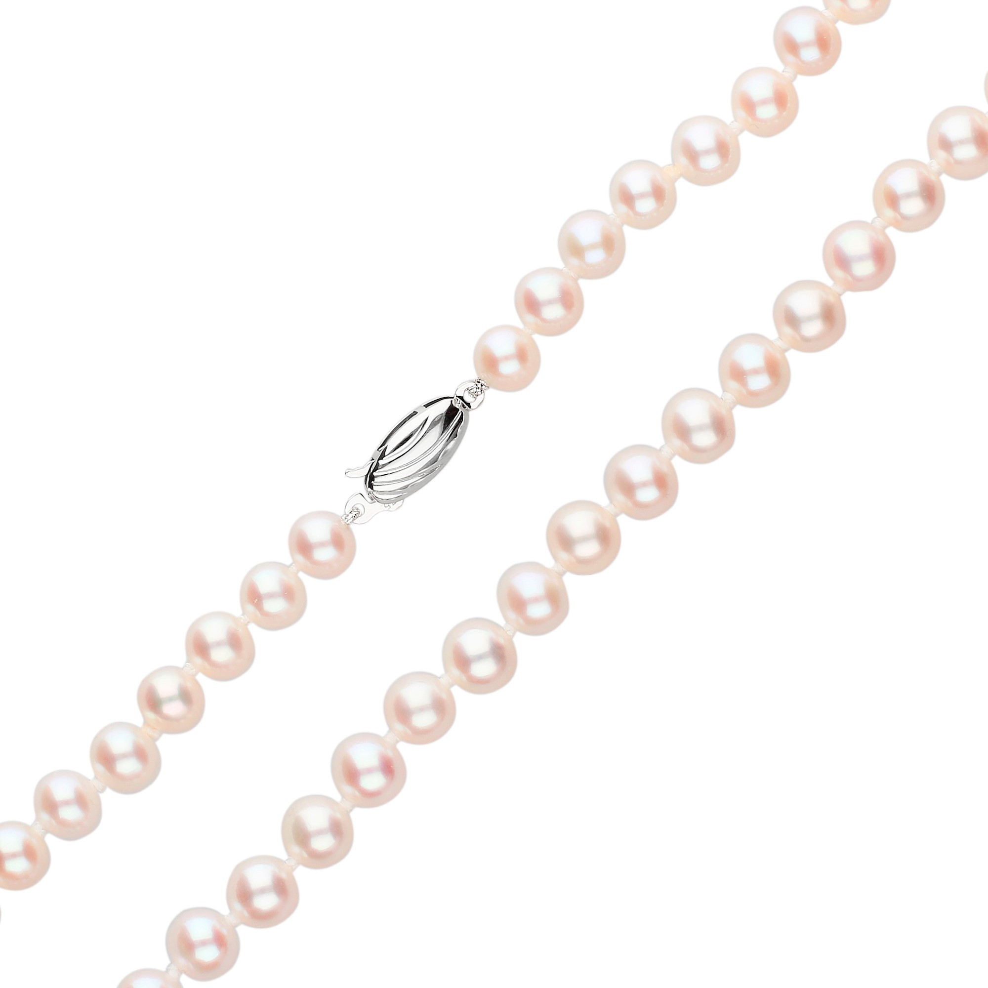 Embrace classic elegance with our 9ct white gold pearl necklace, an essential piece for any sophisticated wardrobe. This necklace is expertly crafted, featuring a string of round, creamy white cultured river pearls, each one handpicked for its exceptional luster and uniformity. The pearls are beautifully strung and secured with a refined white gold clasp, ensuring a secure fit that’s perfect for daily wear or special occasions. Ideal for gifting or personal indulgence, this pearl necklace exudes a timeless charm that complements both contemporary and traditional styles, making it a versatile addition to any jewellery collection.