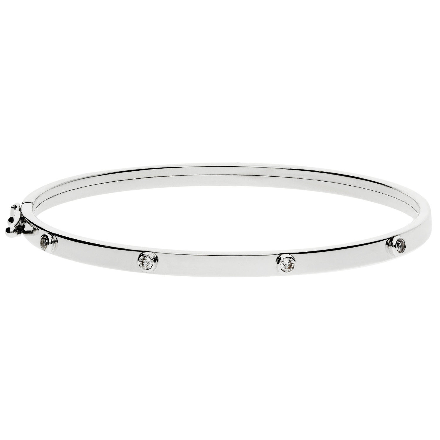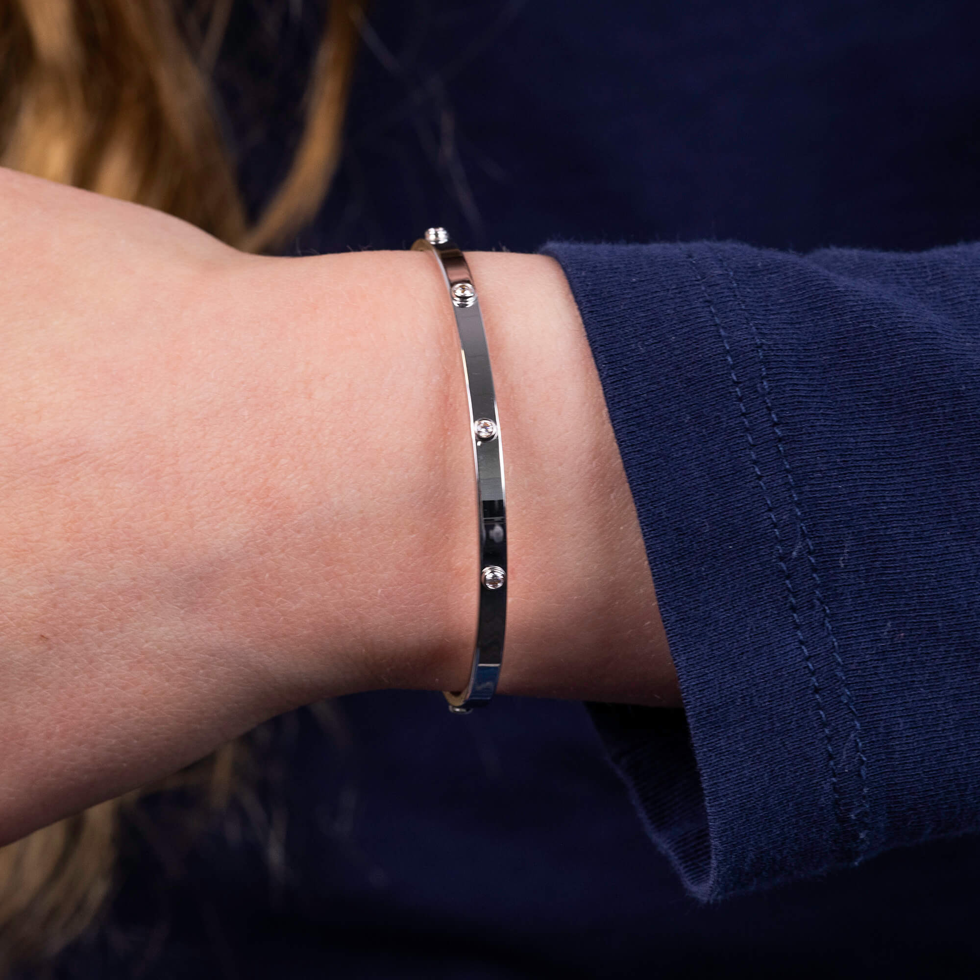 Delight in the delicate beauty of our Children's 9ct White Gold Bangle, a piece that combines elegance with playful charm. This hollow bangle, crafted from luxurious 9ct white gold, is adorned with bezel set cubic zirconias that sparkle with every movement. Its lightweight design makes it comfortable for little ones to wear, while the secure clasp ensures safety throughout the day. Perfect as a gift for birthdays, milestones, or as a precious christening keepsake, this bangle is designed to capture the hearts of both giver and receiver. Its timeless style and shimmering accents make it a treasured addition to any young child's jewellery collection.