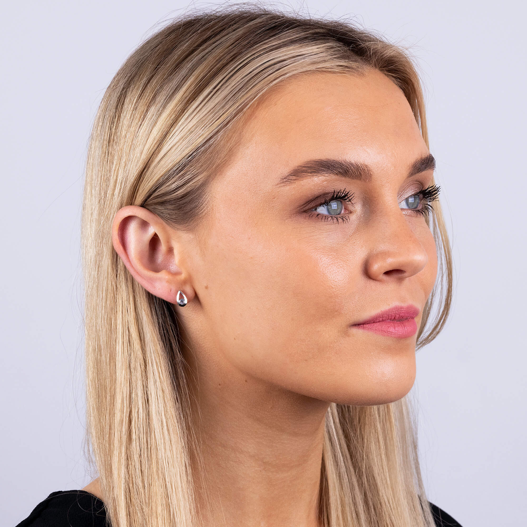 Delight in the serene beauty of these 9ct white gold stud earrings, each adorned with a captivating sky blue topaz. Set gracefully at the bottom of a polished white gold teardrop frame, the round topaz stones total approximately 0.25ct. These earrings combine the icy tones of white gold with the tranquil blue of the topaz, reflecting the calm of a clear sky. The stud design ensures they sit comfortably against the ear, secured with posts and scroll backs for a fit that’s perfect for all day wear. Ideal for adding a touch of calm elegance to any outfit, these earrings are a must-have for women who appreciate subtle luxury.
