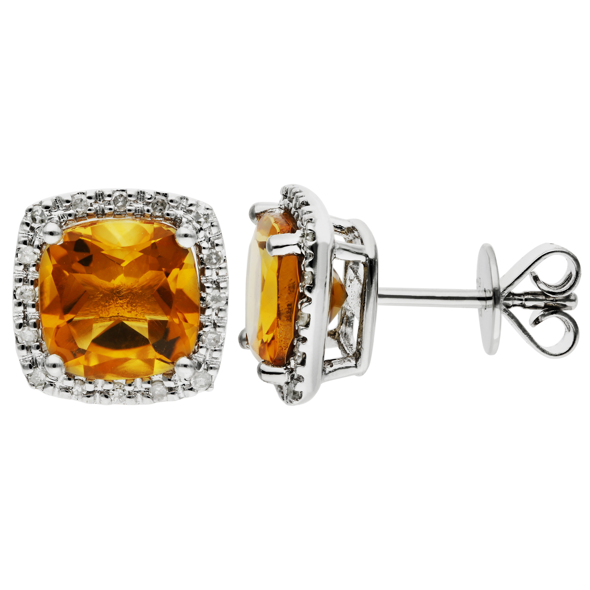 9ct White Gold Citrine & Diamond Earrings
