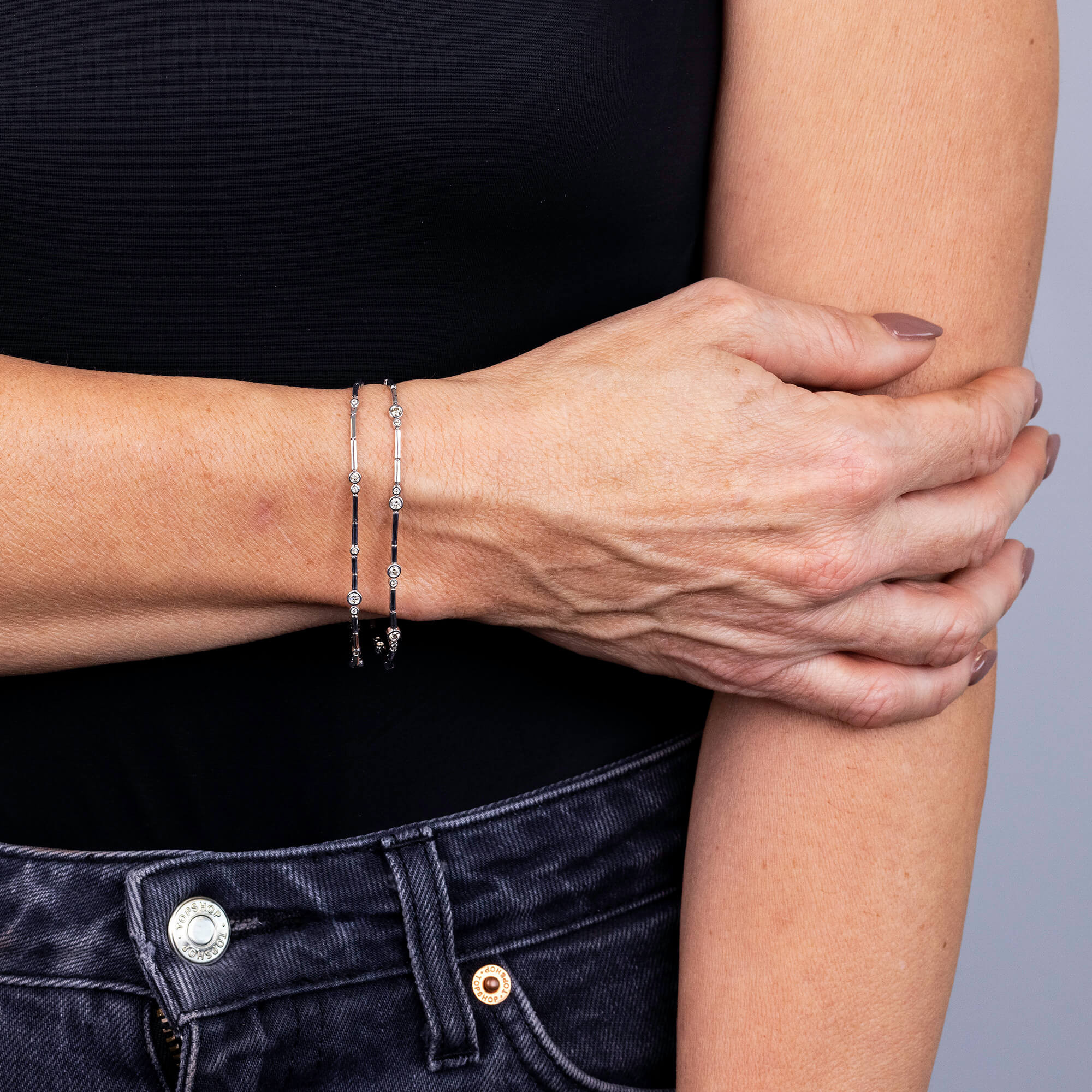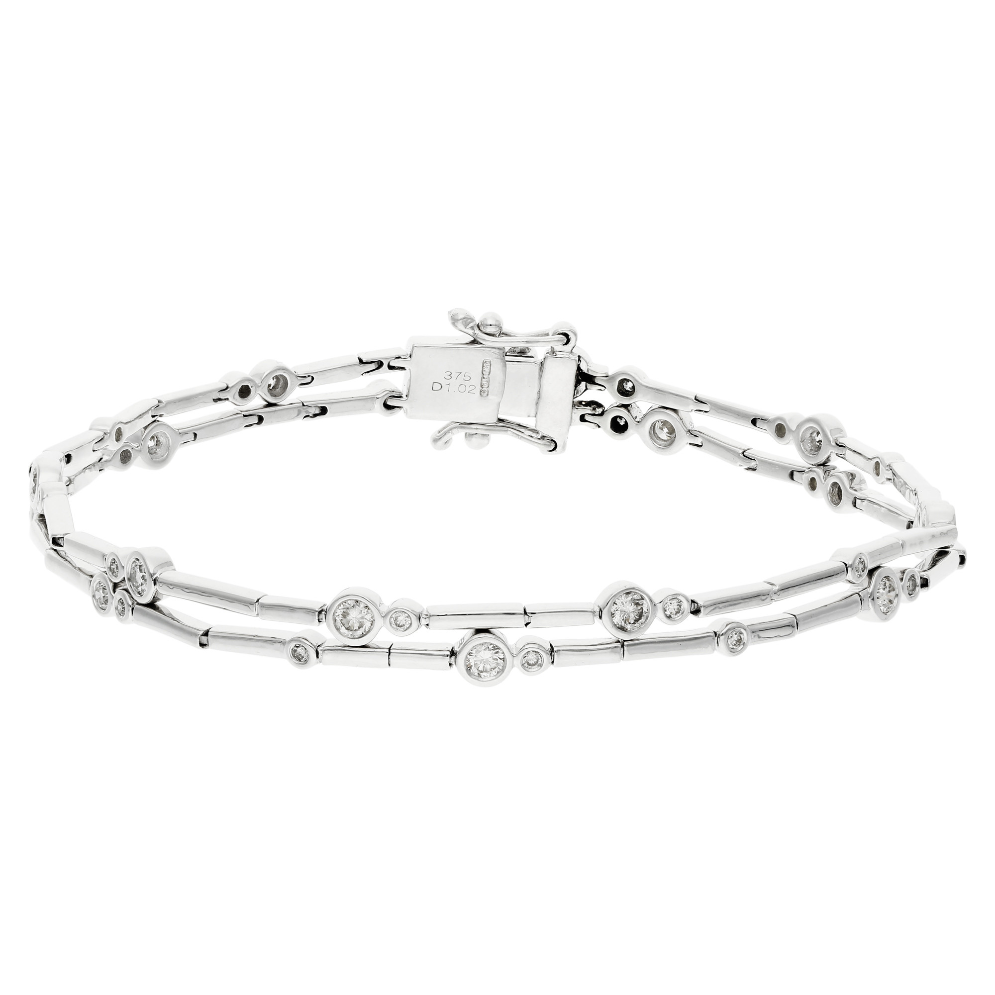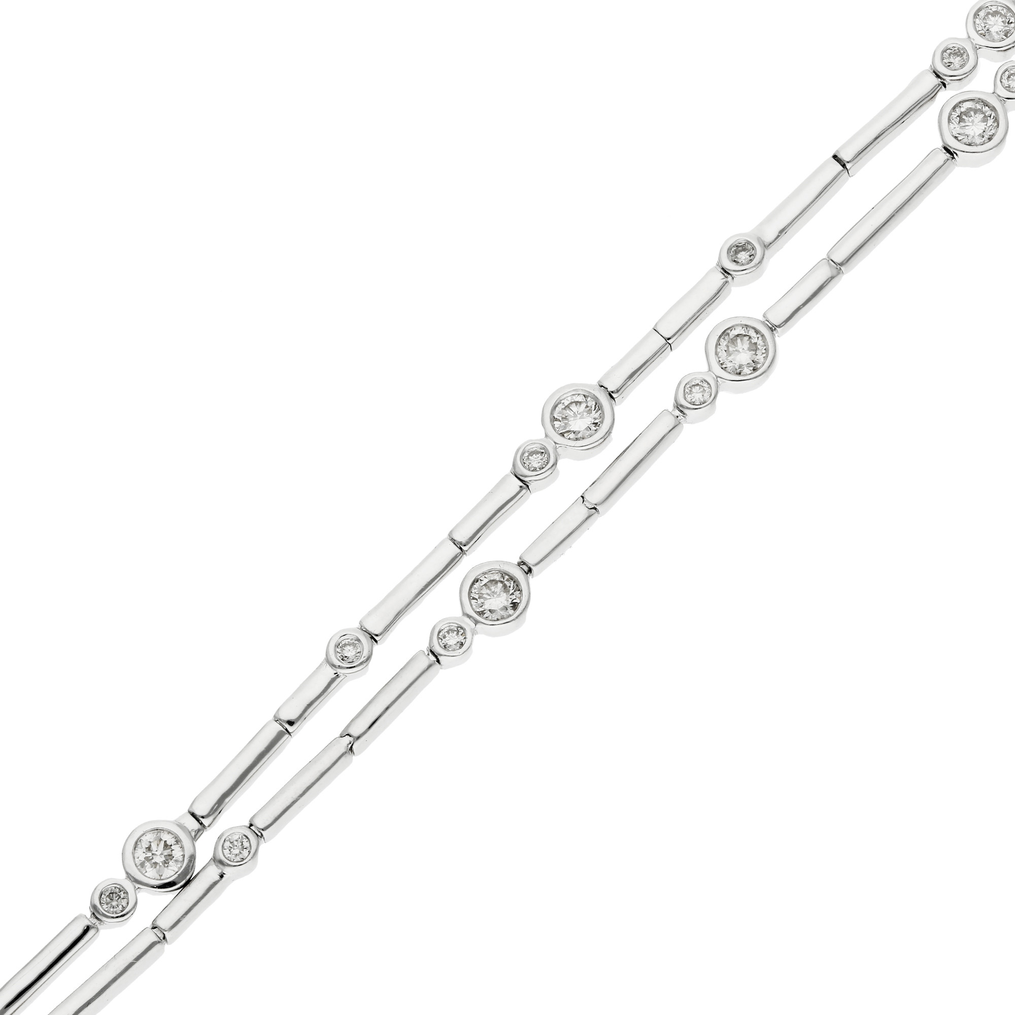 Elevate your style with our chic 9ct White Gold Diamond Bracelet, the perfect blend of elegance and contemporary design. This fashionable bracelet features a double layer of bamboo-style links, each interspersed with dazzling bubbles of diamonds that catch the light with every movement. Crafted in sleek 9ct white gold, this bracelet is not just an accessory but a statement piece that adds a touch of luxury to any outfit. Ideal for an April birthday or as a trendy addition to your jewellery collection, it promises to keep you on trend and in style.