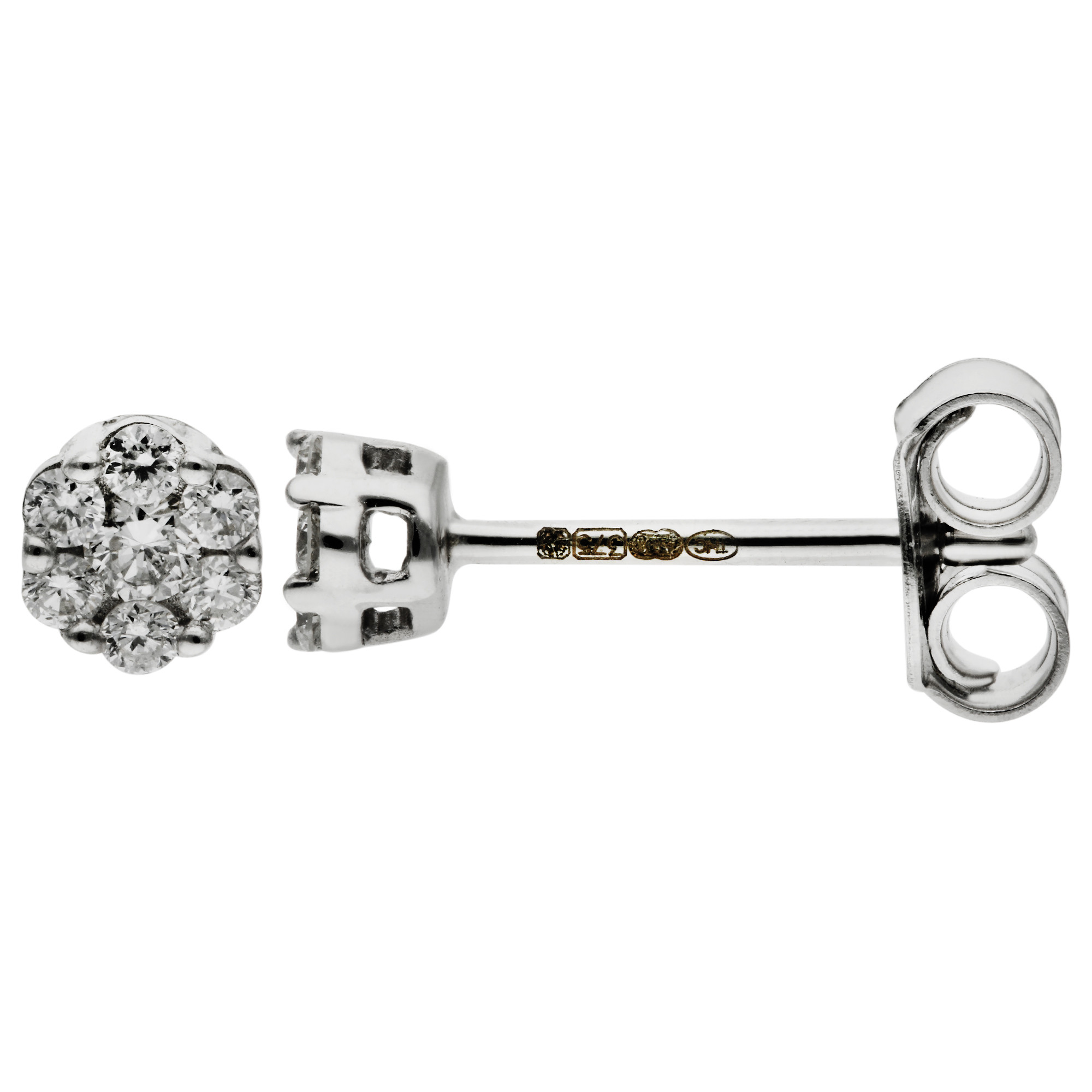 Add a touch of sparkle to your look with our 9ct White Gold 0.15ct Diamond Earrings, designed for women who appreciate elegance. These stunning stud earrings feature a tiny floral cluster of diamonds, creating a delicate and eye-catching design. The total carat weight of 0.15ct ensures a brilliant shine that enhances any outfit.