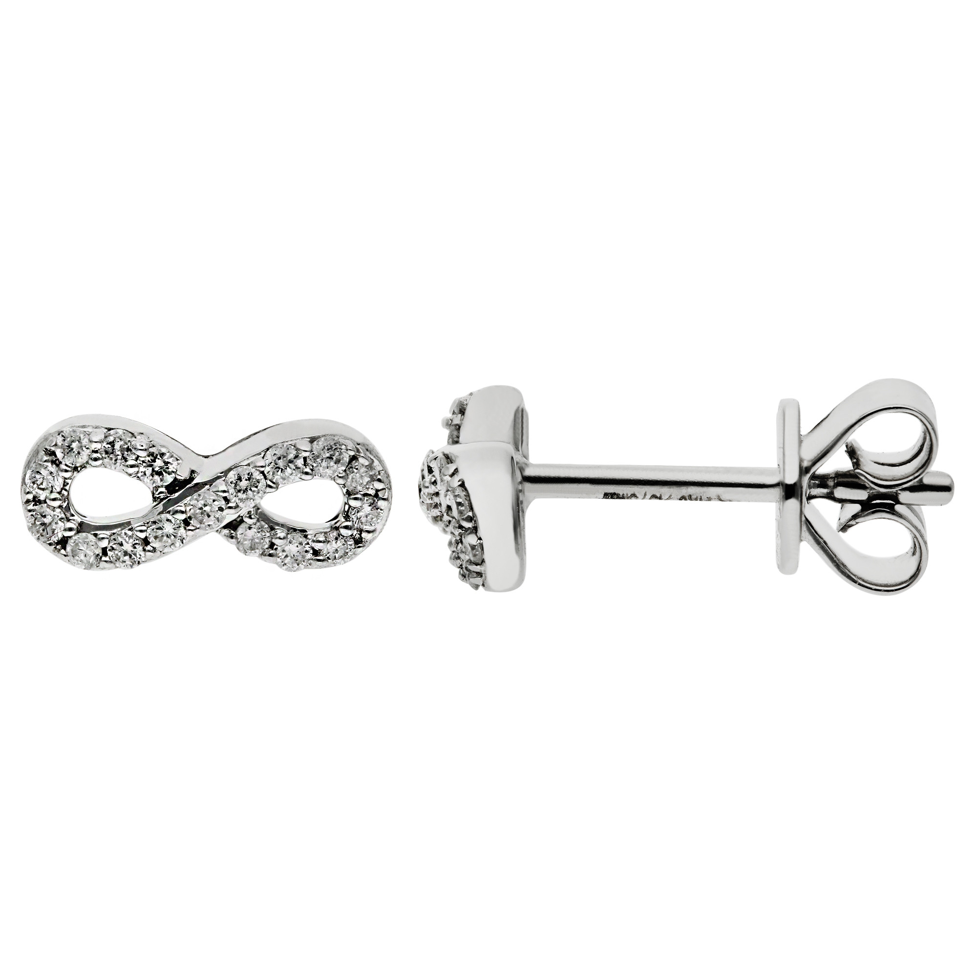 Elevate your jewellery collection with these exquisite 9ct white gold women's earrings, featuring a delicate infinity motif. Each earring is meticulously crafted in white gold and adorned with a smattering of tiny diamonds, adding a touch of sparkle and elegance. Designed as stud earrings with secure posts and butterfly backs, they offer both comfort and reliability for all-day wear. The timeless infinity design symbolises endless love and elegance, making these earrings perfect for any occasion. Enhance your style with the sophisticated beauty of these 9ct white gold diamond earrings.