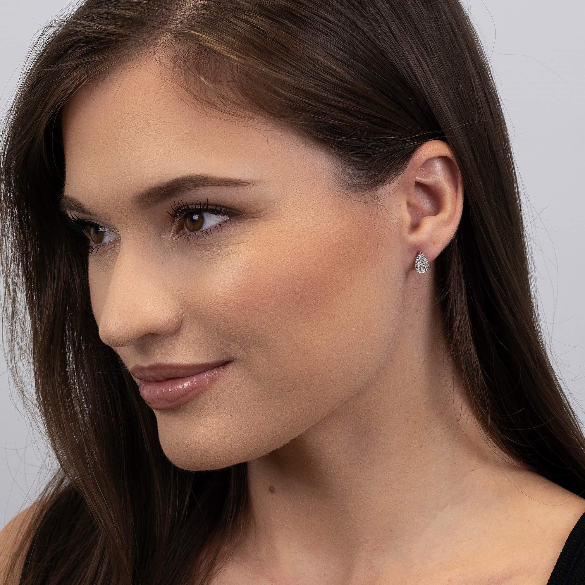 Add a dash of sparkling elegance to your wardrobe with these exquisite 9ct white gold diamond earrings. Each earring features a teardrop-shaped cluster of tiny, shimmering diamonds that elegantly dangle just below the lobe. Designed with posts and scroll backs for a secure and comfortable fit, these earrings are perfect for any special occasion, from weddings to galas. Their captivating sparkle and timeless design make them a must-have accessory for any jewellery lover, enhancing any outfit with a touch of luxury and sophistication.