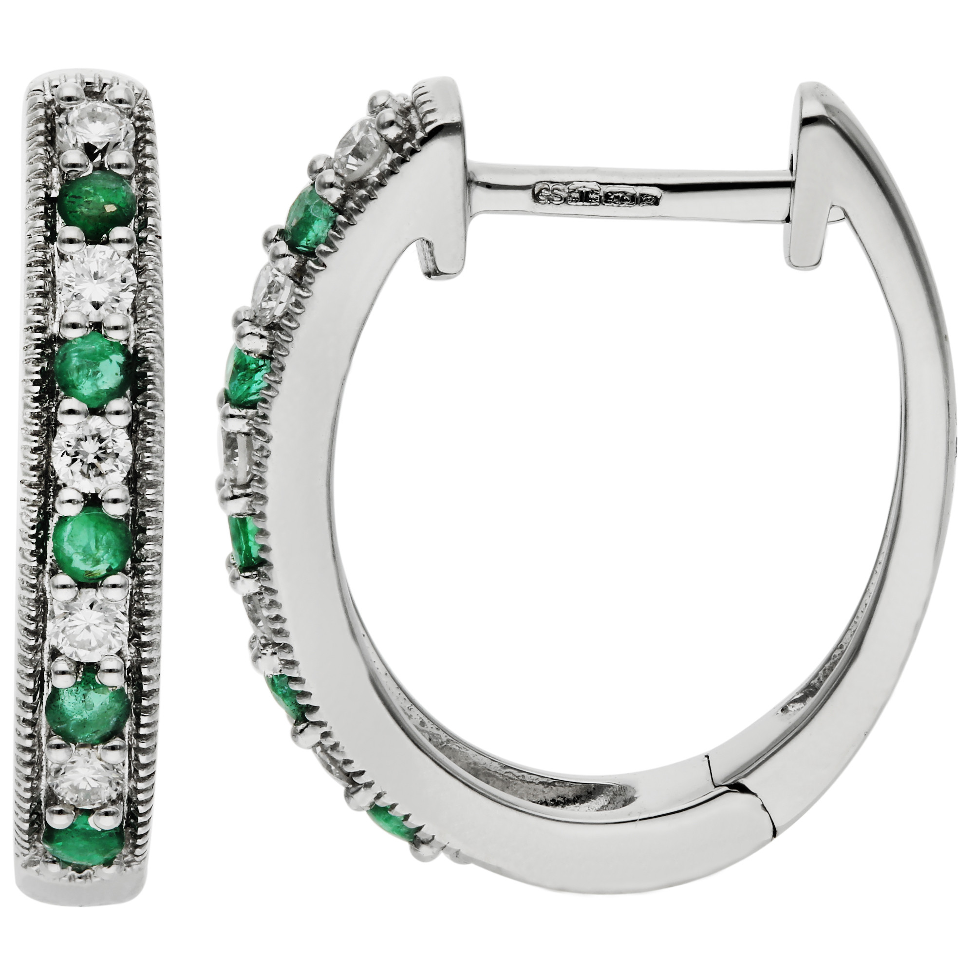 Ideal as a thoughtful gift or a luxurious treat for yourself, these emerald and diamond hoop earrings are sure to impress. Order now for fast UK delivery and elevate your jewellery collection with the refined beauty of our 9ct White Gold 15mm Emerald & Diamond Hinged Hoop Earrings. A perfect blend of classic elegance and modern style.
