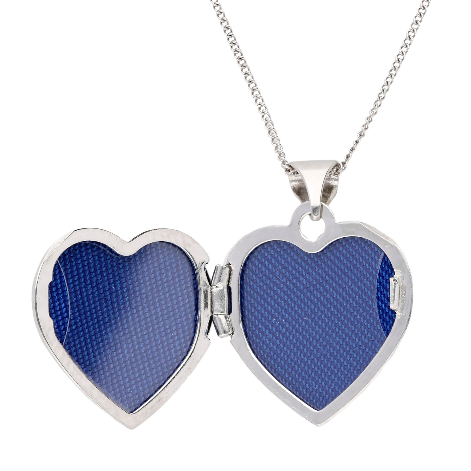 Introducing our elegant 9ct White Gold Heart Locket, a symbol of love and cherished memories. This beautifully crafted locket features a classic heart shape with a partially embossed scrollwork design on the front, adding a touch of vintage charm. The back is smoothly finished, providing a perfect canvas for personal engravings. This timeless piece is ideal for holding a special memento close to your heart, whether it be a photograph or a tiny keepsake. The locket is suspended from a complementary chain, with the option to select the ideal length from our dropdown menu. Whether as a heartfelt gift or a personal treasure, this heart locket is sure to be cherished for years to come.