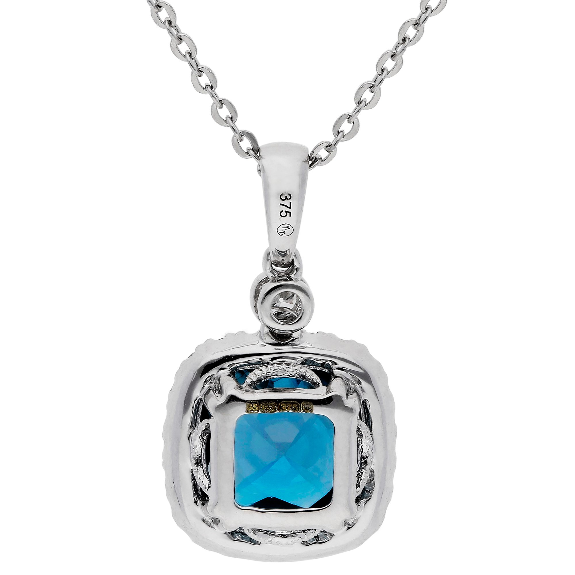 9ct White Gold Diamond &1.98ct London Blue Topaz Pendant