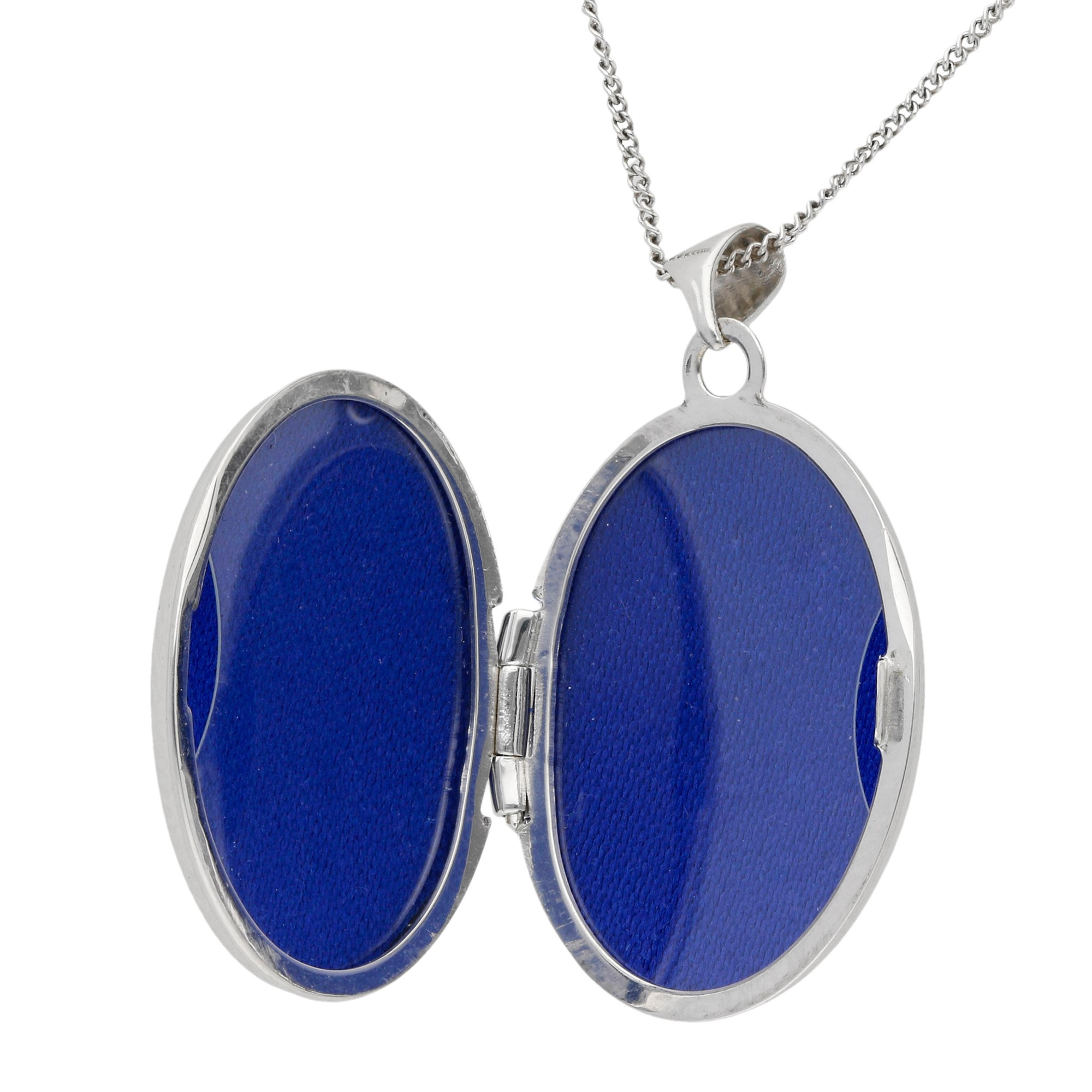 Introducing our exquisite 9ct White Gold Locket, a timeless piece designed to capture hearts and preserve memories. This elegant locket features an oval shape, crafted from polished white gold, adorned with a partial embossed scrollwork pattern on the front, adding a touch of vintage charm. The back remains smooth, offering a perfect space for personal engraving to make this piece truly unique. Complete with a chain, this locket allows you to choose the ideal length from the dropdown menu, ensuring it sits just right. Whether as a gift or a personal treasure, this white gold locket is a beautiful way to keep your loved ones close to your heart.