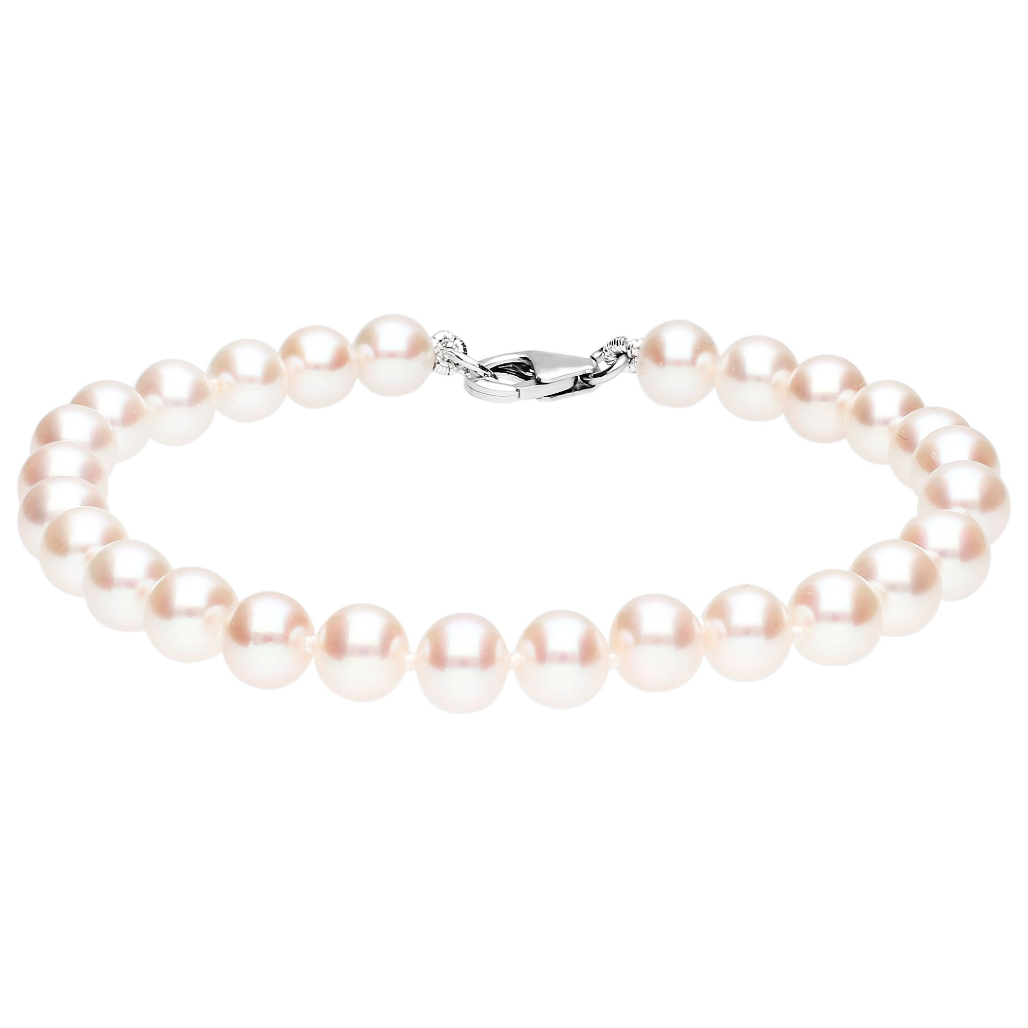 Immerse yourself in the elegance of our 9ct White Gold Pearl Bracelet, a stunning accessory crafted to enhance any ensemble. This bracelet features a series of 6-6.5mm white round cultured river pearls, each one boasting a voluptuous form and silky shimmer. These exquisite freshwater cultured pearls are carefully hand-strung and secured with a chic 9ct white gold lobster clasp, providing a secure and stylish finish. This classic and timeless ladies' pearl bracelet makes an ideal complement to any outfit, and it's a perfect choice for a thoughtful gift on occasions such as a June birthday, pearl anniversary, wedding, or graduation. Adorn your wrist with this piece and carry a touch of sophistication wherever you go.
