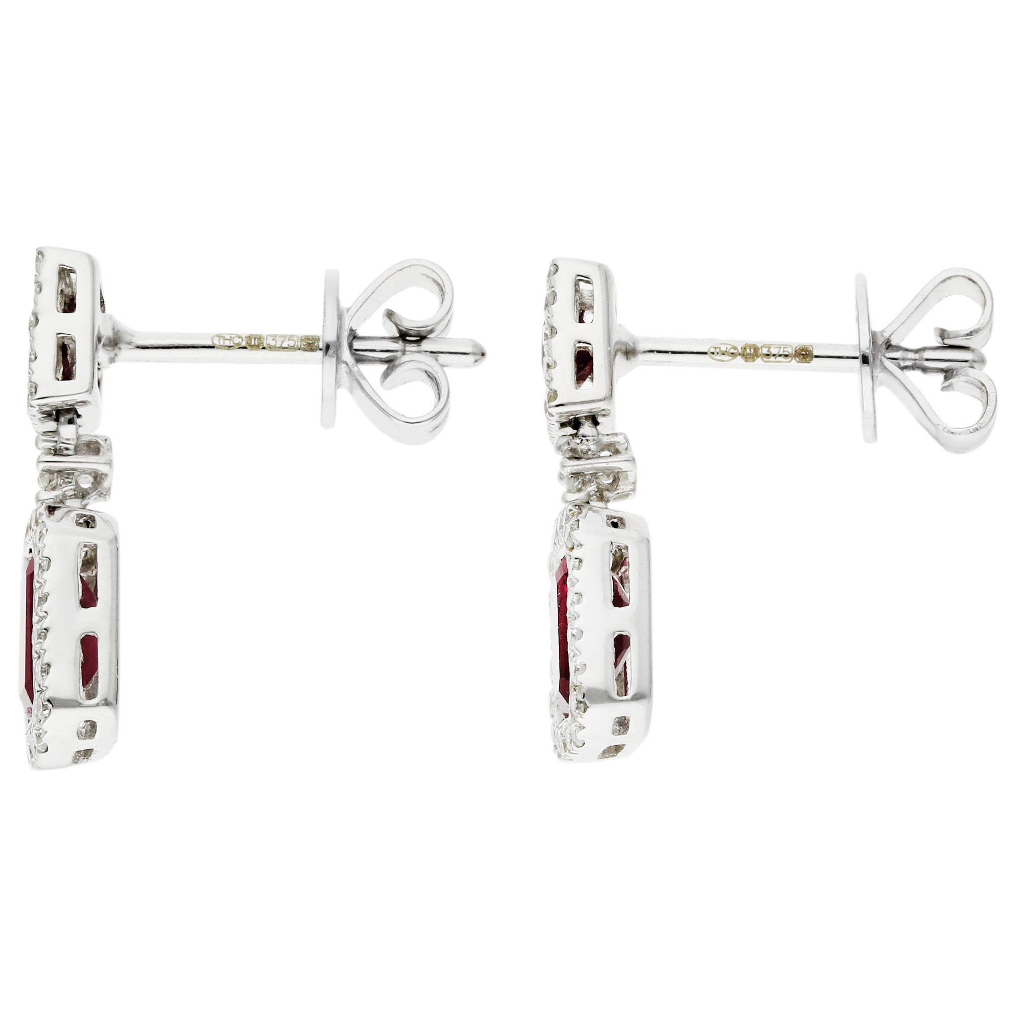 9ct White Gold 0.92ct Ruby Drop Earrings