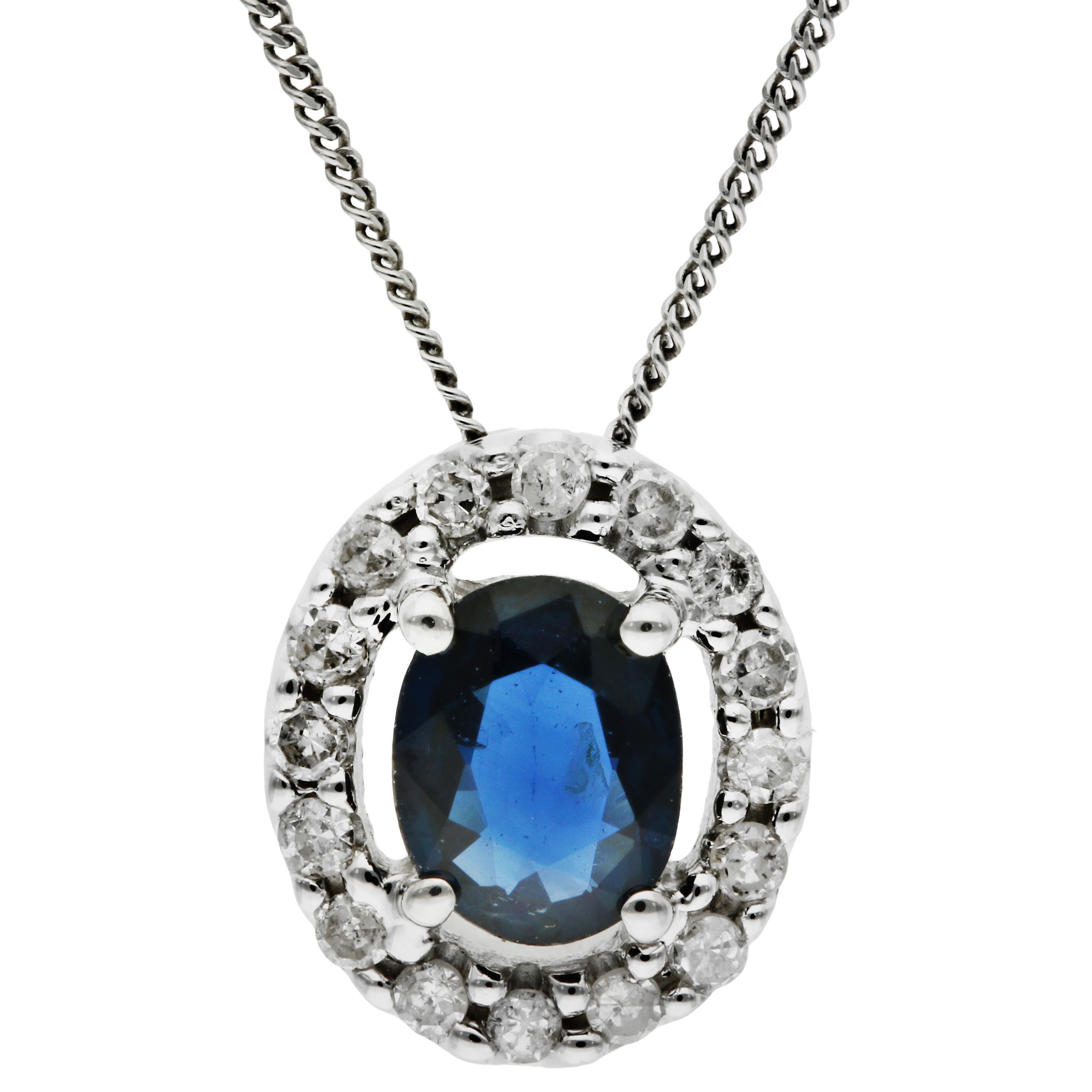 9ct White Gold Diamond & 0.25ct Sapphire Pendant