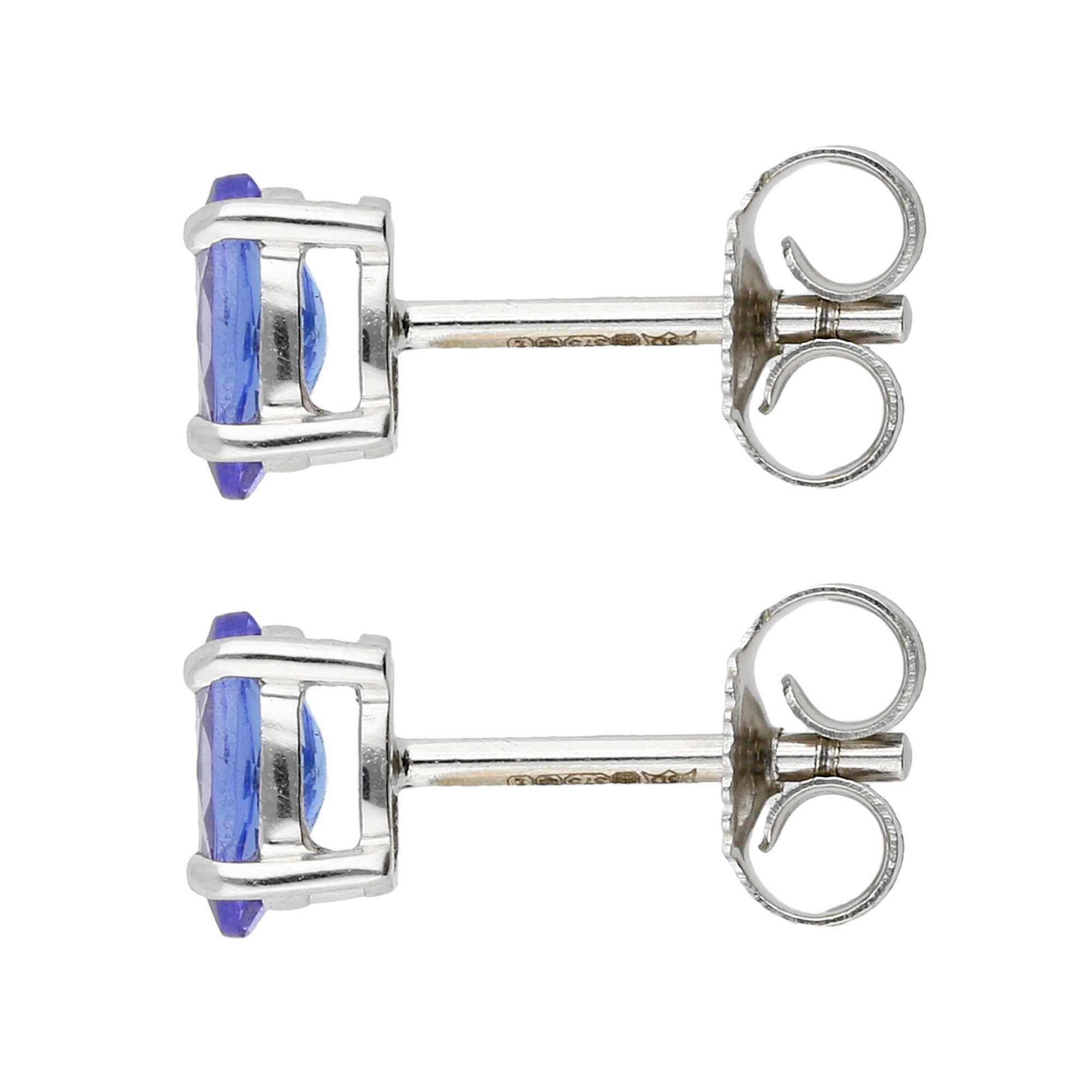 Elevate your jewellery collection with these exquisite women's earrings, meticulously crafted from 9ct white gold and featuring a total of 0.80ct of tanzanites. Each earring is adorned with a single oval cut tanzanite, claw set to enhance the stone's vibrant blue-violet hues. The elegant white gold setting provides a perfect backdrop, accentuating the gemstone's natural brilliance. Secure posts and scroll backs ensure a comfortable and secure fit, making these earrings suitable for both daily wear and special occasions. These tanzanite earrings offer a sophisticated and timeless appeal, adding a touch of luxury and elegance to any ensemble. Indulge in the unique beauty of tanzanite, set in classic white gold, and experience the refined craftsmanship that defines these stunning stud earrings.